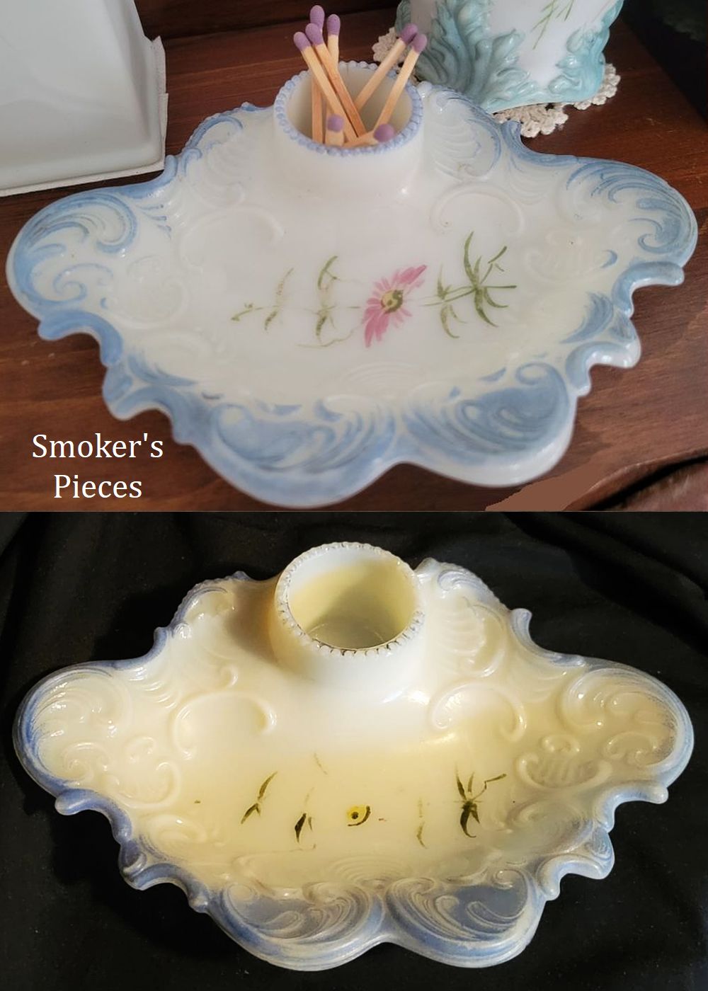 NOTE: We show pieces with a lid, although a catalog example is currently not available. Pieces without the lid are part of a smoker's set. Pieces with the lid would be ink wells and part of stationary supplies. (perhaps with a separate OMN)