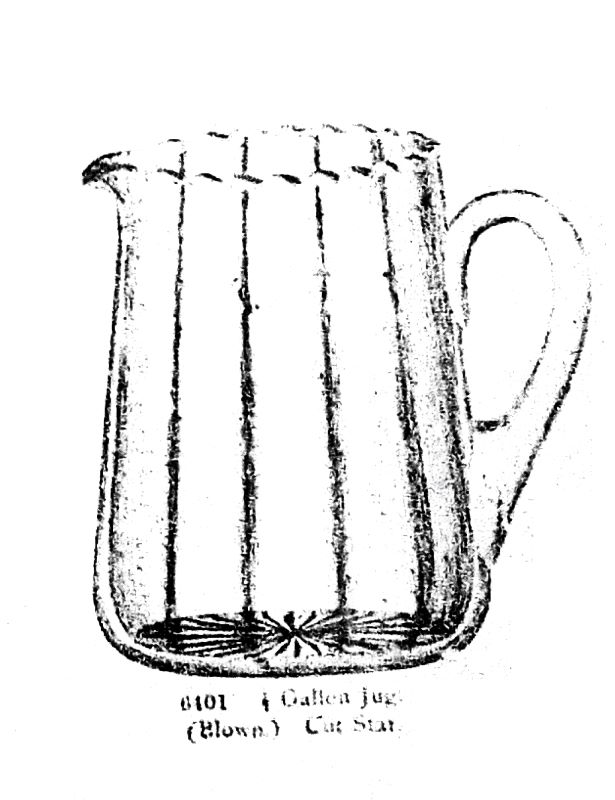 NOTE: Sid Lethbridge 2023: No. 6401 (OMN) 1/2 gal jug. It is described as blown with a cut star base. It appears in the 1898 general catalogue but could date earlier.