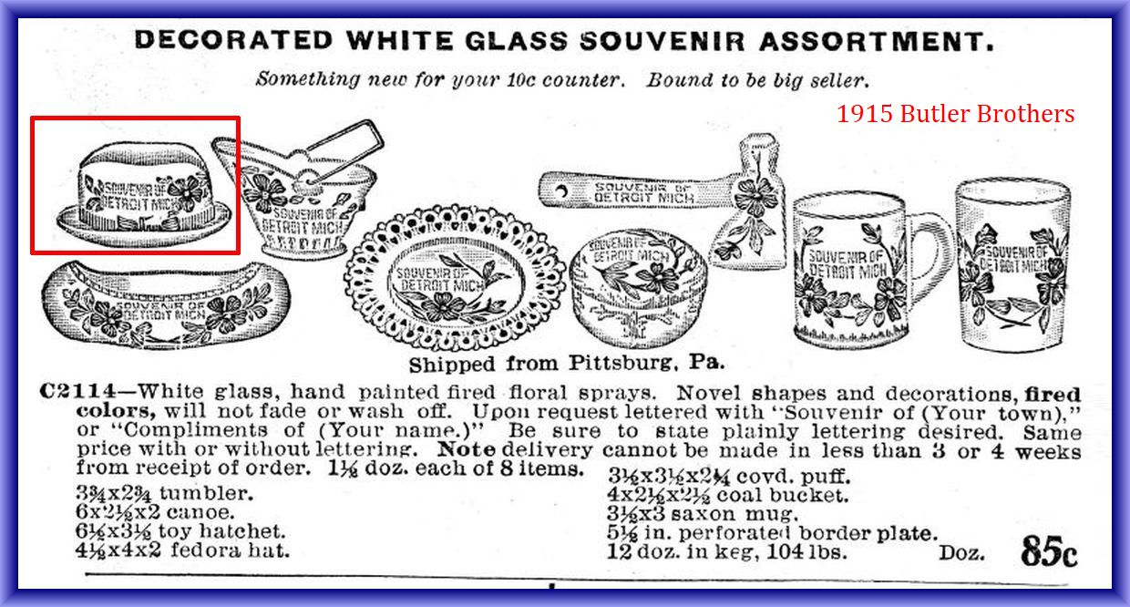 NOTE: Found in 1915 Butler Brothers catalog, was introduced earlier. It appears in a 1909 catalogue and are mentioned in a 1908 trade quote.