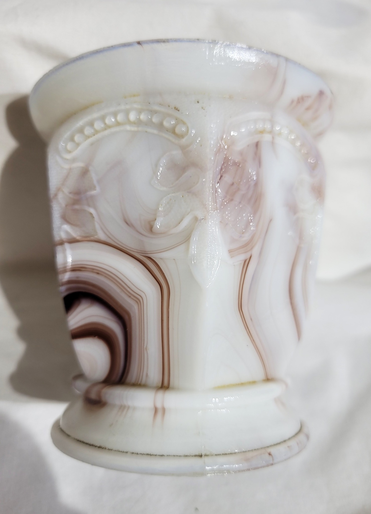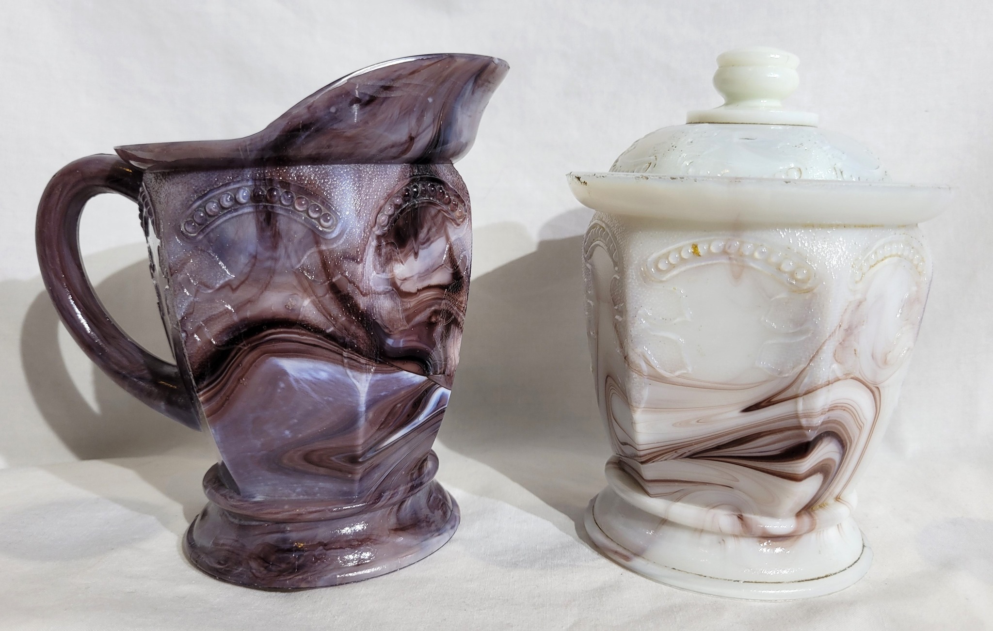 MARBLE HEXAGON SUGAR-CREAMER (AKA) by Northwood, H. Company/Wheeling-WV (Company Operated: 1902-1924), c1903 Introduced