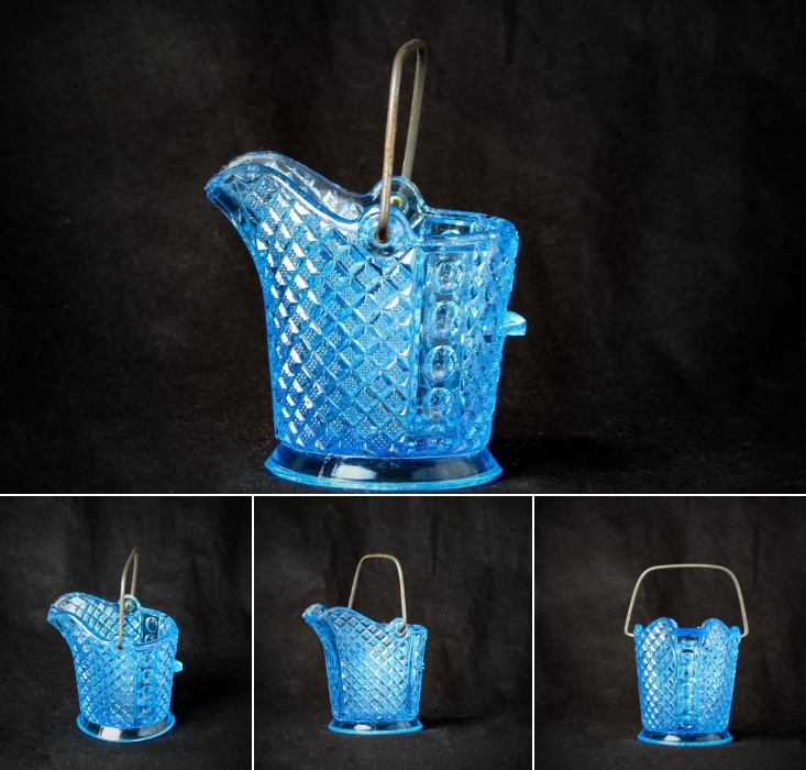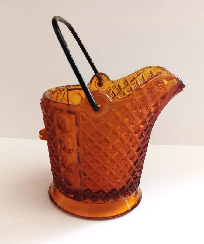 NOTE: Sanford"s Victorian Novelties page 145, "Coal Hod toothpick or match holder in the Diamond Point pattern".