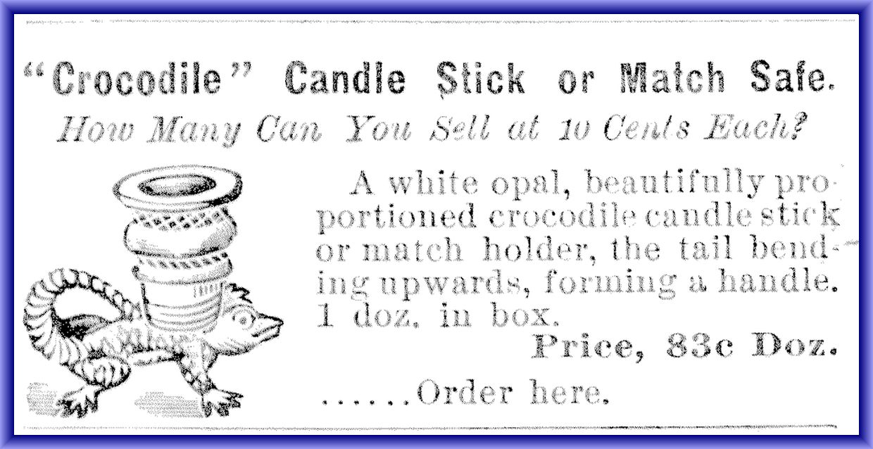 NOTE: Shown in a 1890 Butler Bros. as a toothpick or candle holder.
