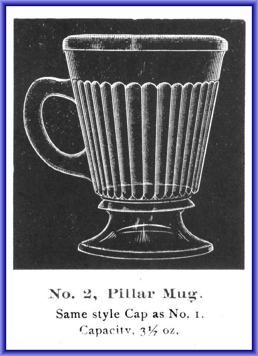 SPECIALTY GLASS CO. No. 2 PILLAR MUG (OMN) by Specialty Glass Company/East Liverpool-Ohio (Company Operated: 1888-1898), Uncertain Date of Introduction/c1893