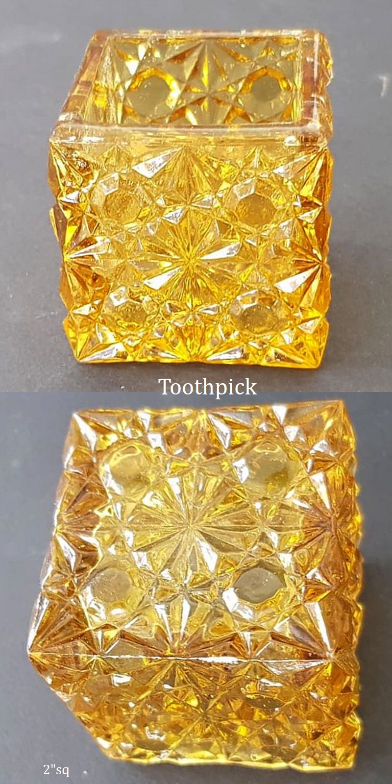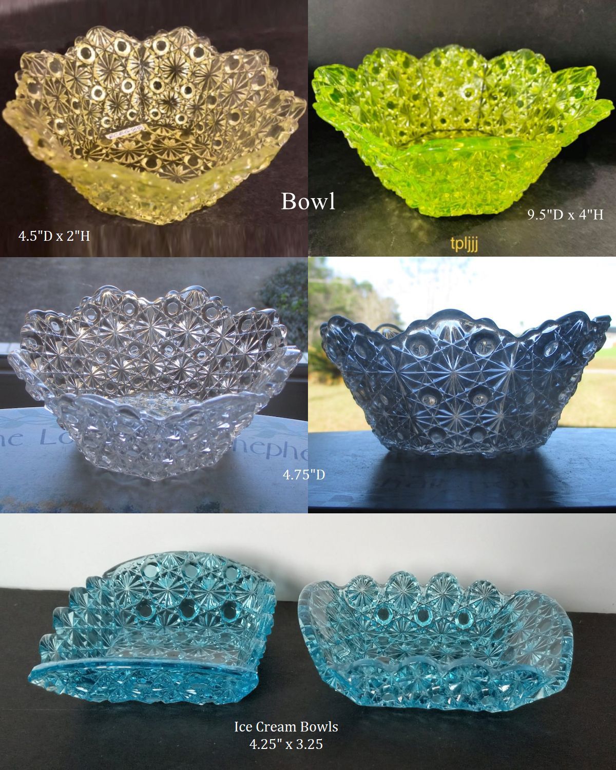 Contributor: Kathy Conn Turner - second smallest of four sizes. three buttons and two daisies; larger two sizes have four buttons and three daisies. 5.5H, 2D, 4oz