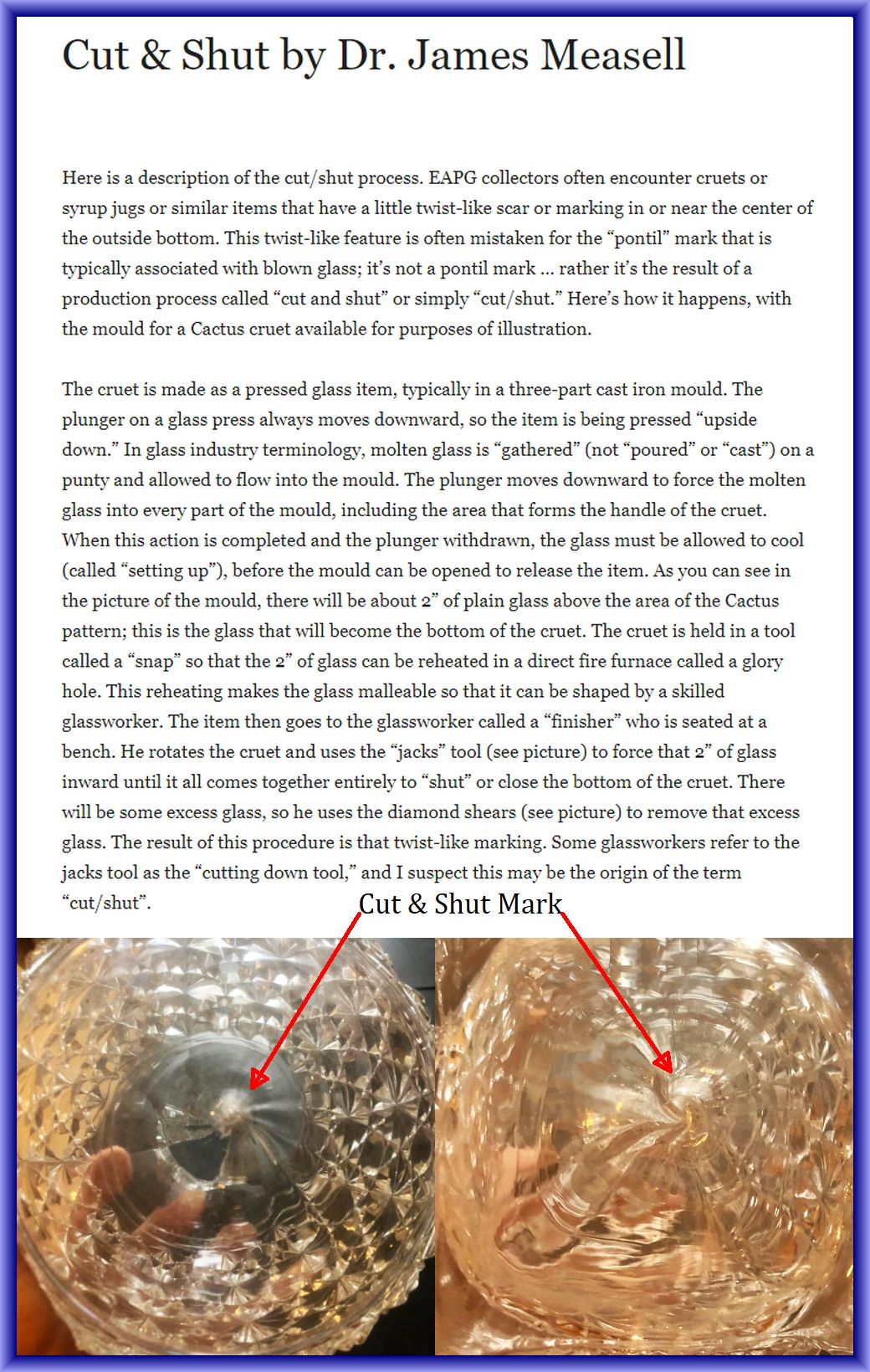 Contributor: Jim McClure - Cut-shut tool - used to close the bottoms of cruets and other items pressed into the molds upside down. Used up into the early 19th Century.