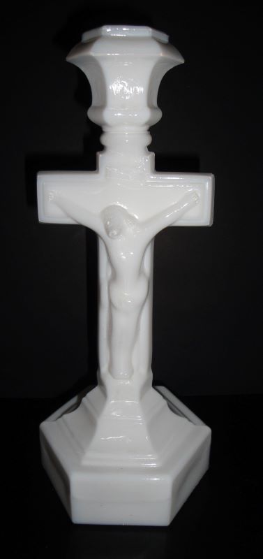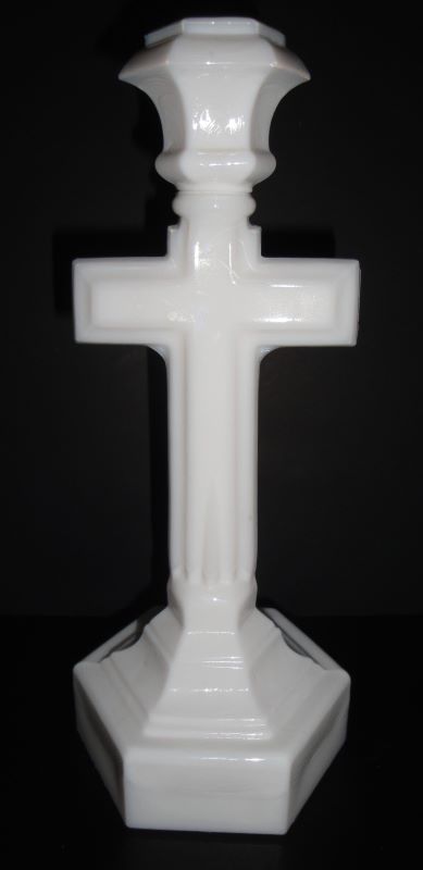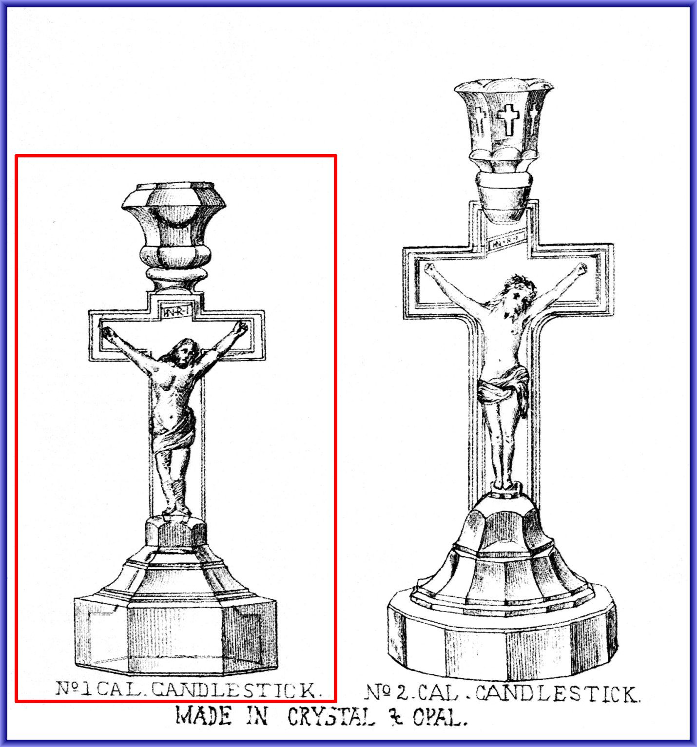 NOTE: Teres Haas 2023 - Like the No. 2, it has the pointed support at the foot of the cross on the back, a great identifying feature when comparing it to 2 other very similar candlesticks, one by the New England Glass Co. and another, maker unknown.