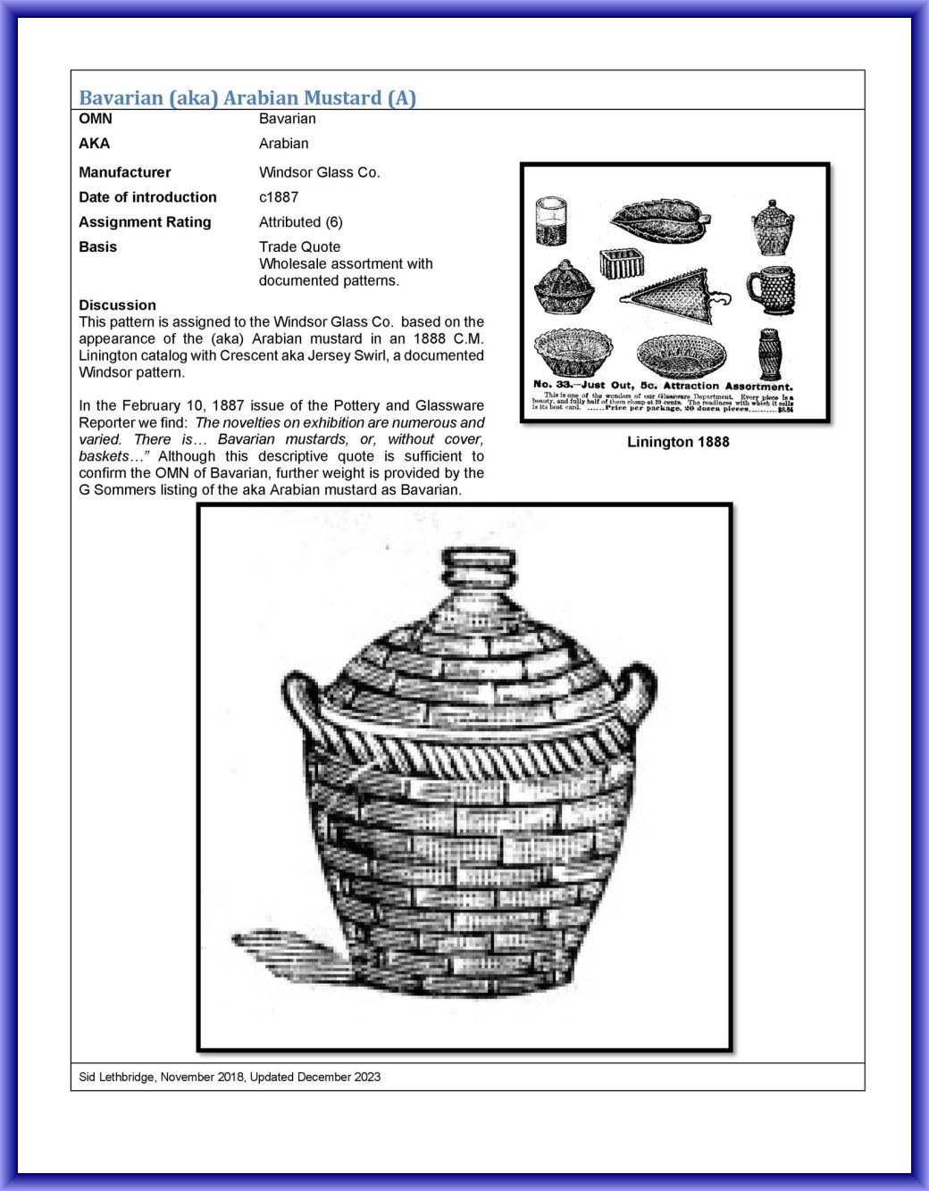 NOTE: Sid Lethbridge 2023 - February 10, 1887 edition of the Pottery and Glassware Reporter gives the correct OMN of Bavarian.