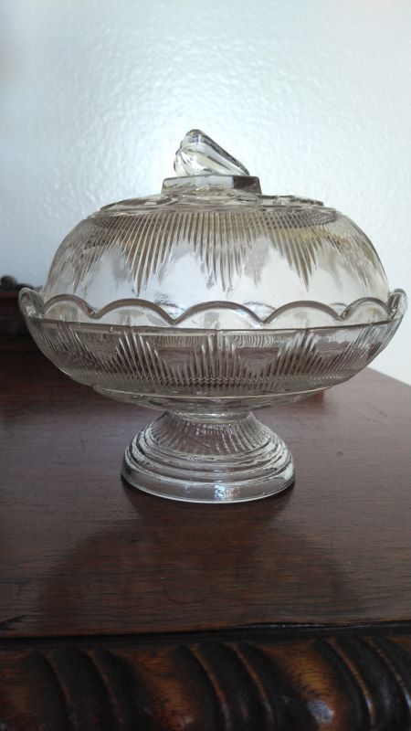 Contributor: Hawk Jackson 6" wide, with lid 5-1/2" tall to top of finial.
