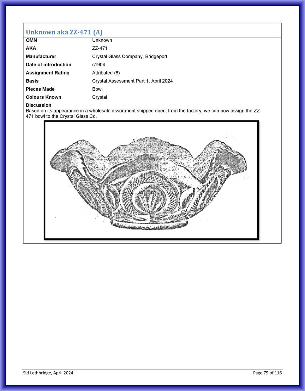 NOTE: Bowl that was ZZ Unidentified No. 471 moved to CRYSTAL GLASS CO. OHIO UNNAMED PATTERN No.10 (AKA)