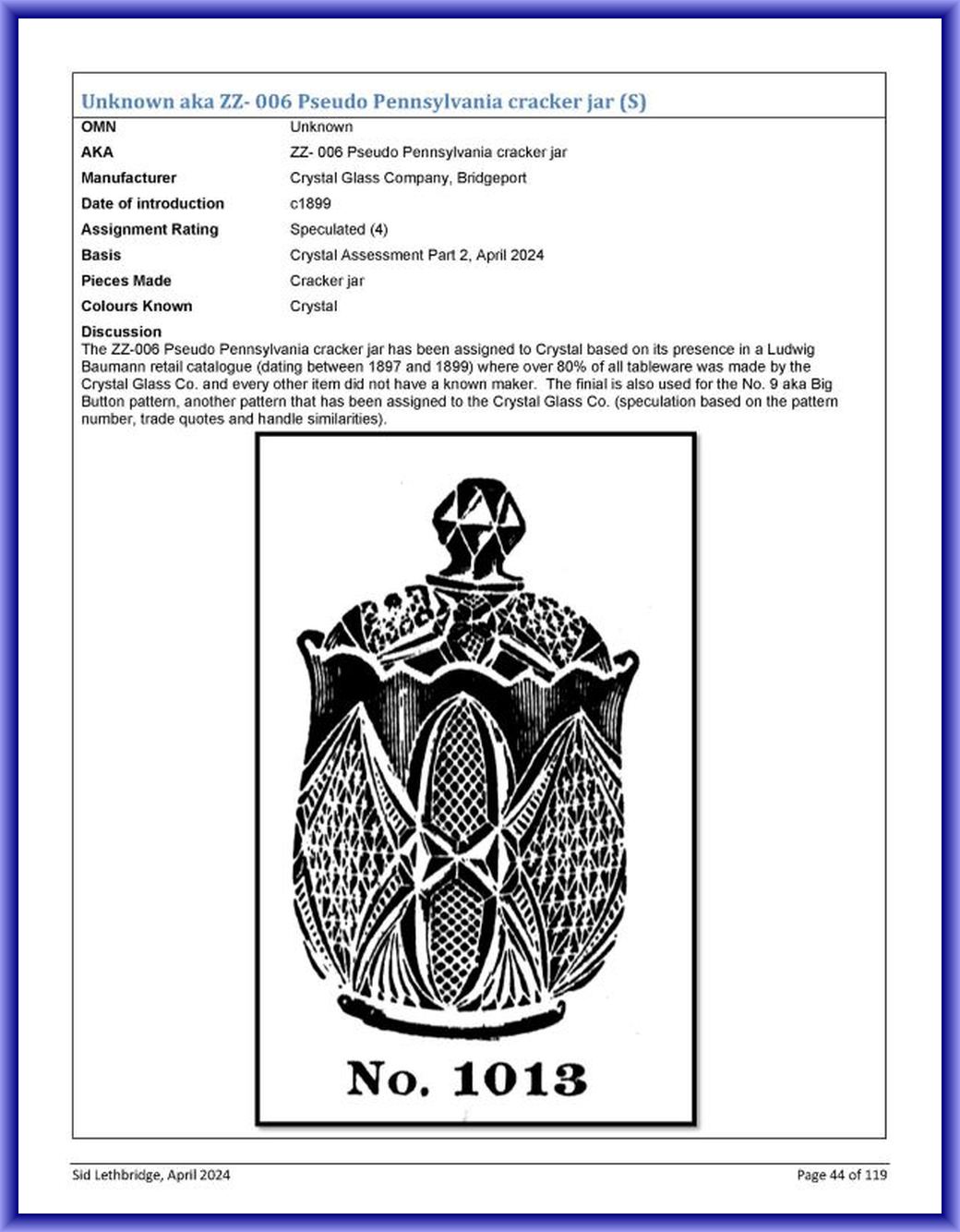 ZZ UNIDENTIFIED No. 006 [moved to CRYSTAL GLASS OHIO UNNAMED No. 24 ]