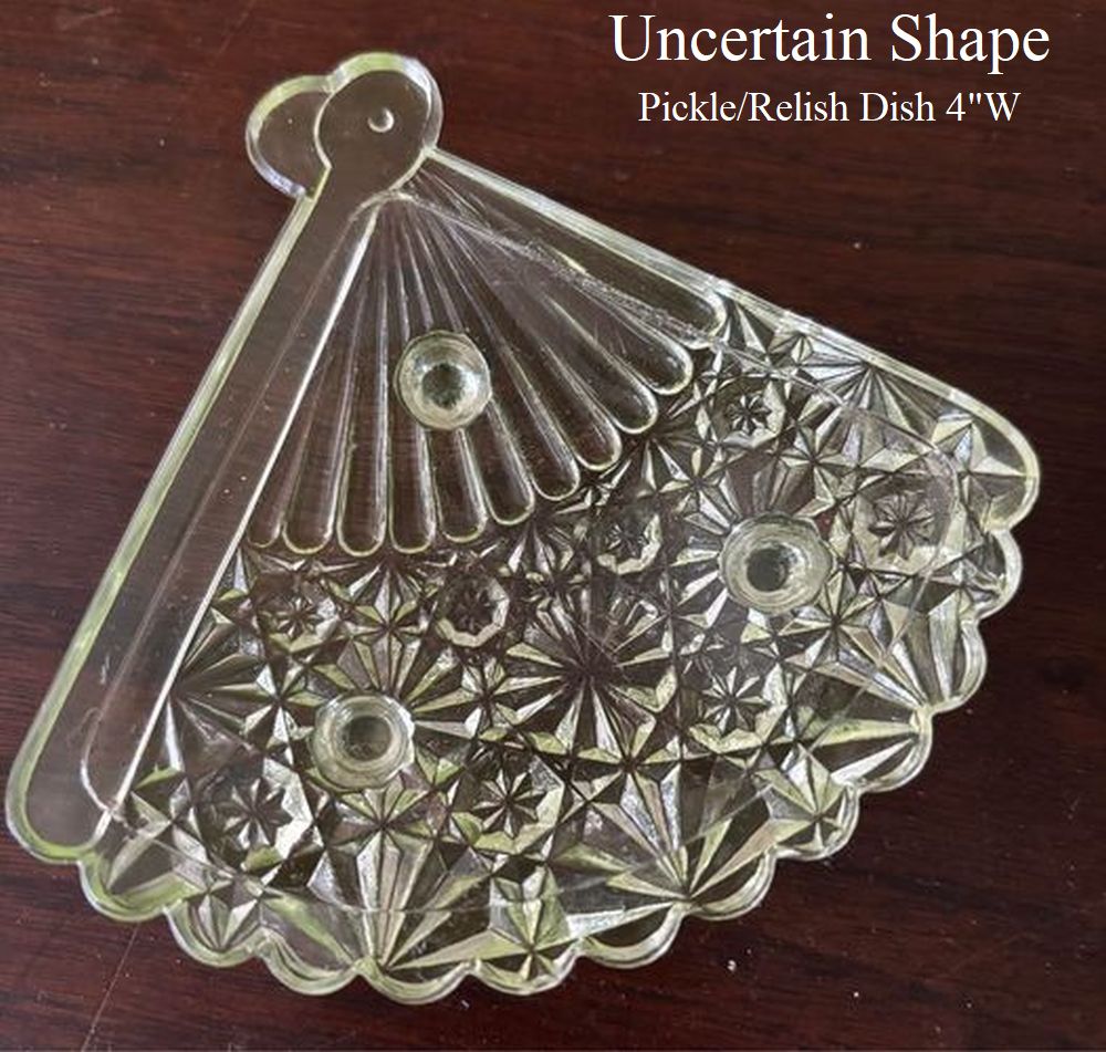 NOTE: Uncertain of shape. Listing as a pickle/relish dish. 4"W