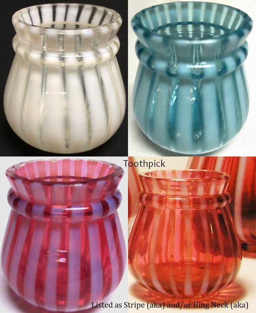 Contributor: Roger Haworth, Kathleen Davis - cross listed as Stripe (aka) and/or Ring Neck aka by Northwood Glass Co.