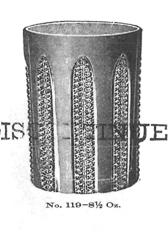NOTE: Sid Eapg (Lethbridge) 2024: No. 119 (OMN) tumbler. The cut is from a c1905 Heisey catalogue but this tumbler dates to c1897.