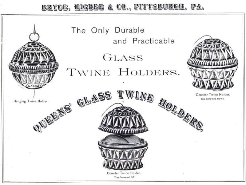 QUEENS GLASS TWINE HOLDER (OMN) by Bryce, Higbee & Company/Pittsburgh-PA (Company Operated: 1879-1907), unknown date introduced