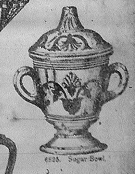 NOTE: Paul Kirk Jr.: a covered sugar in this pattern shows up in USGCo.'s 1898 catalog as No. 6825 and an earlier, undated, catalog with a handwritten notation "Glassport" which may imply it was produced at that factory. There are no other pieces shown besides the covered sugar