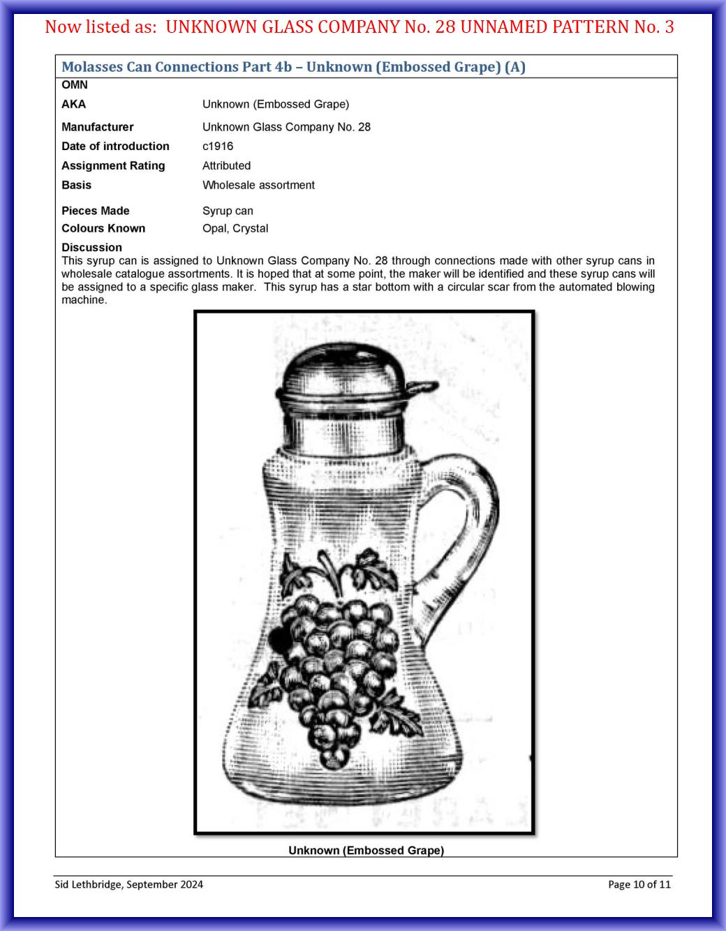UNKNOWN GLASS COMPANY No. 28 UNNAMED PATTERN No. 3