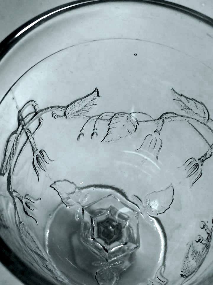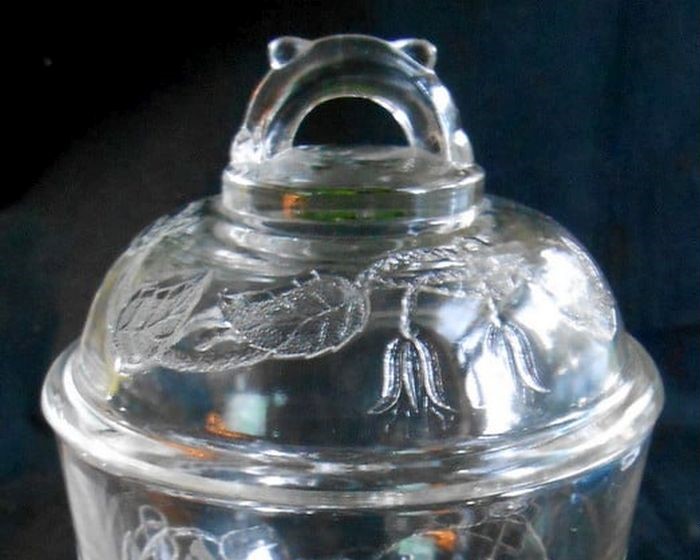 Contributor: Sandy Cohen - butter dish (covered nappy) with a base element: stippled star in a beaded circle. Similar to other Adams patterns CHAIN MYRTLE, MEDALLION