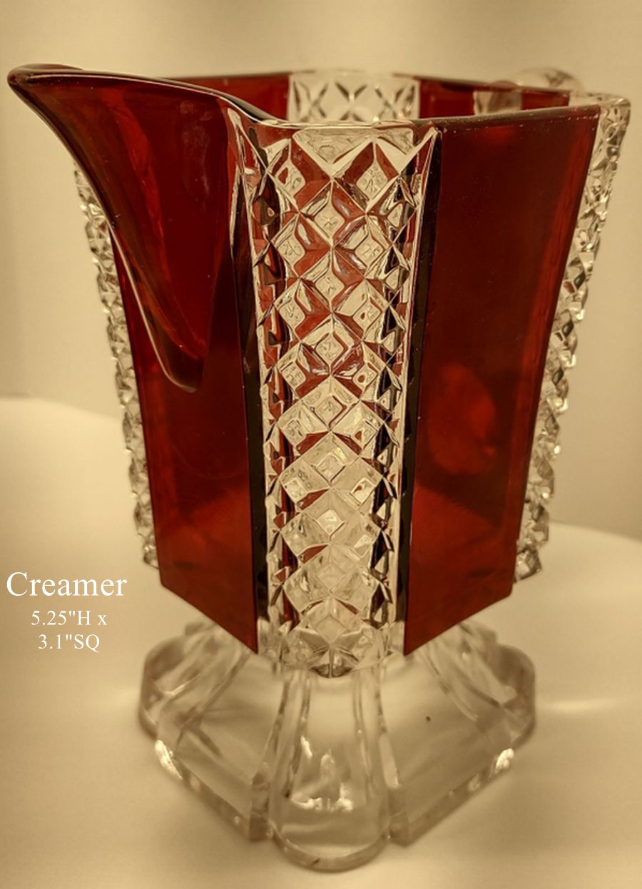 NOTE: Square body shape. Similar in design to FOSTORIA GLASS CO. No. 301 LORRAINE (OMN) and GERMANIC (OMN).