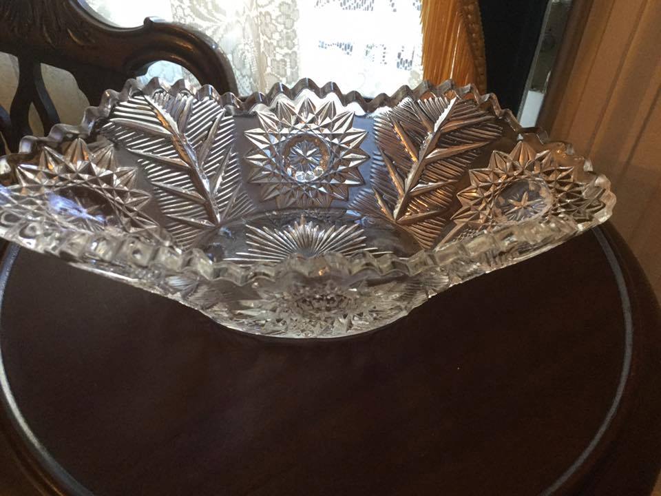 Contributor: Pete J Melewski 9 inch cupped nut bowl: 9" W x 2-1/4" H with a 3-7/16" base diameter