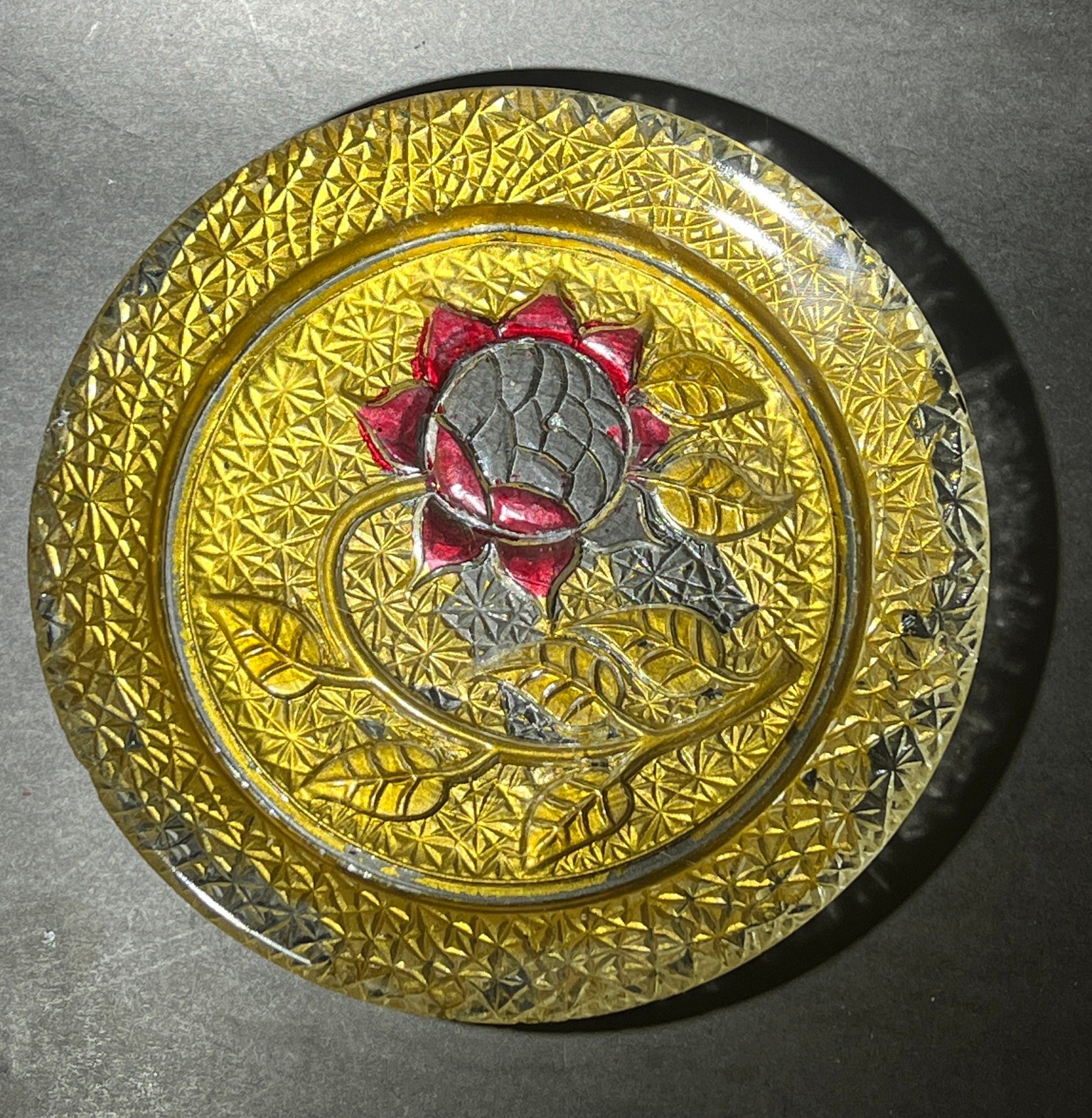 NOTE: Four similar dishes called "sauces" shown on the Goofus Glass site, AKA The Sunflower Sauce, Thistle Sauce, The Grapes Sauce.