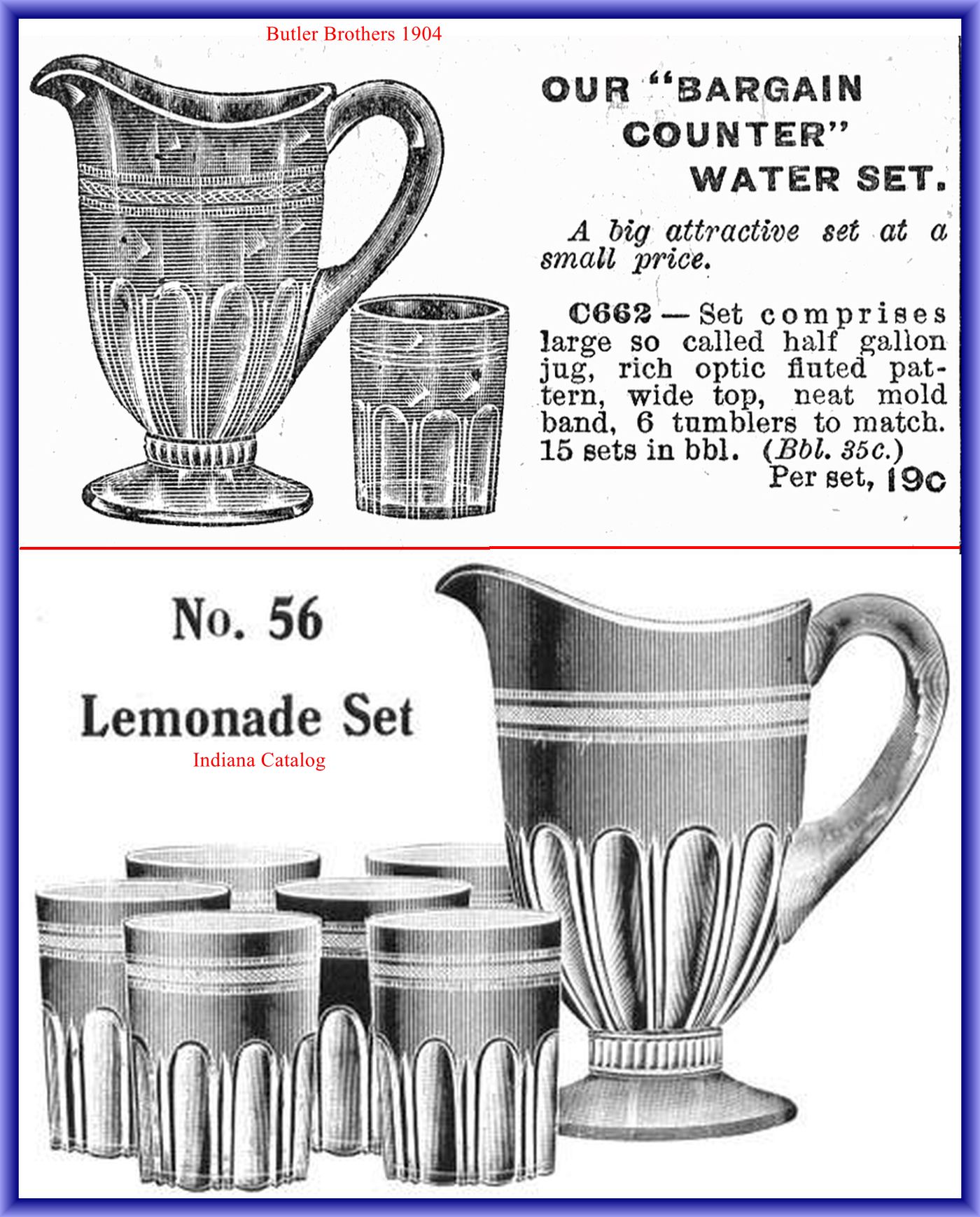 NOTE: This pitcher and matching tumbler begin to appear Butler Bros. wholesale catalogues around 1904.