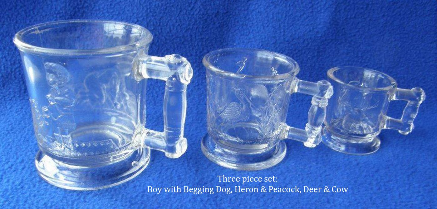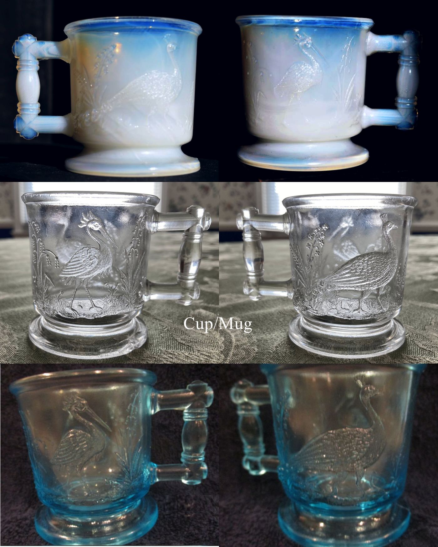 NOTE: Ref: Pg. 14 and 16 of Pattern Glass Mugs by Adams & Mordock. This mug was made in clear, blue, opaque white and opaque blue. It has been extensively reproduced, often marked with a Degenhart logo.