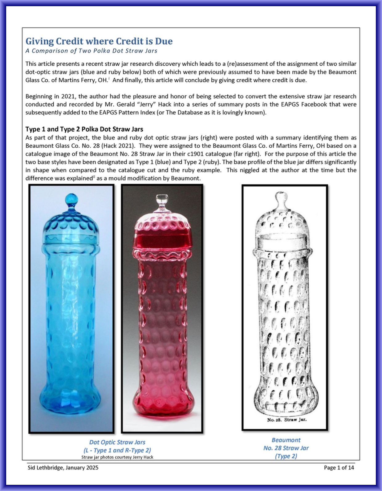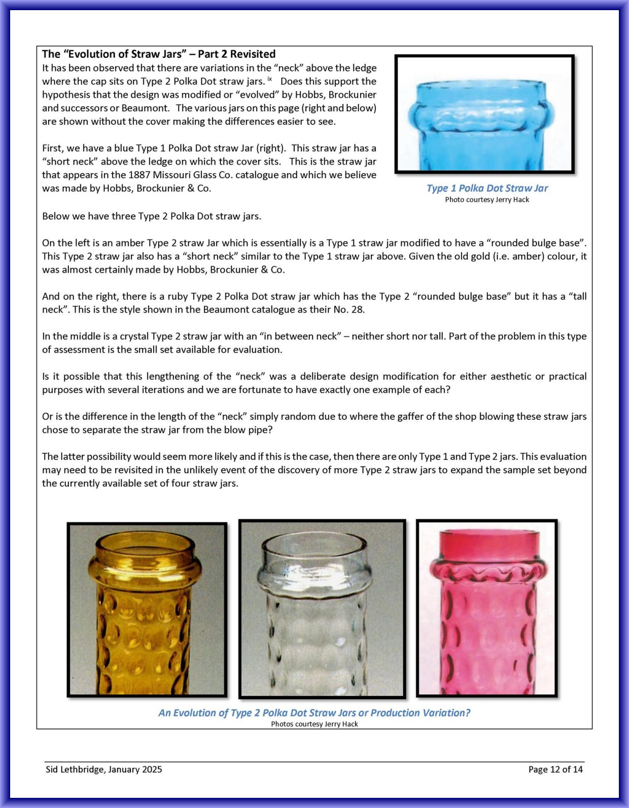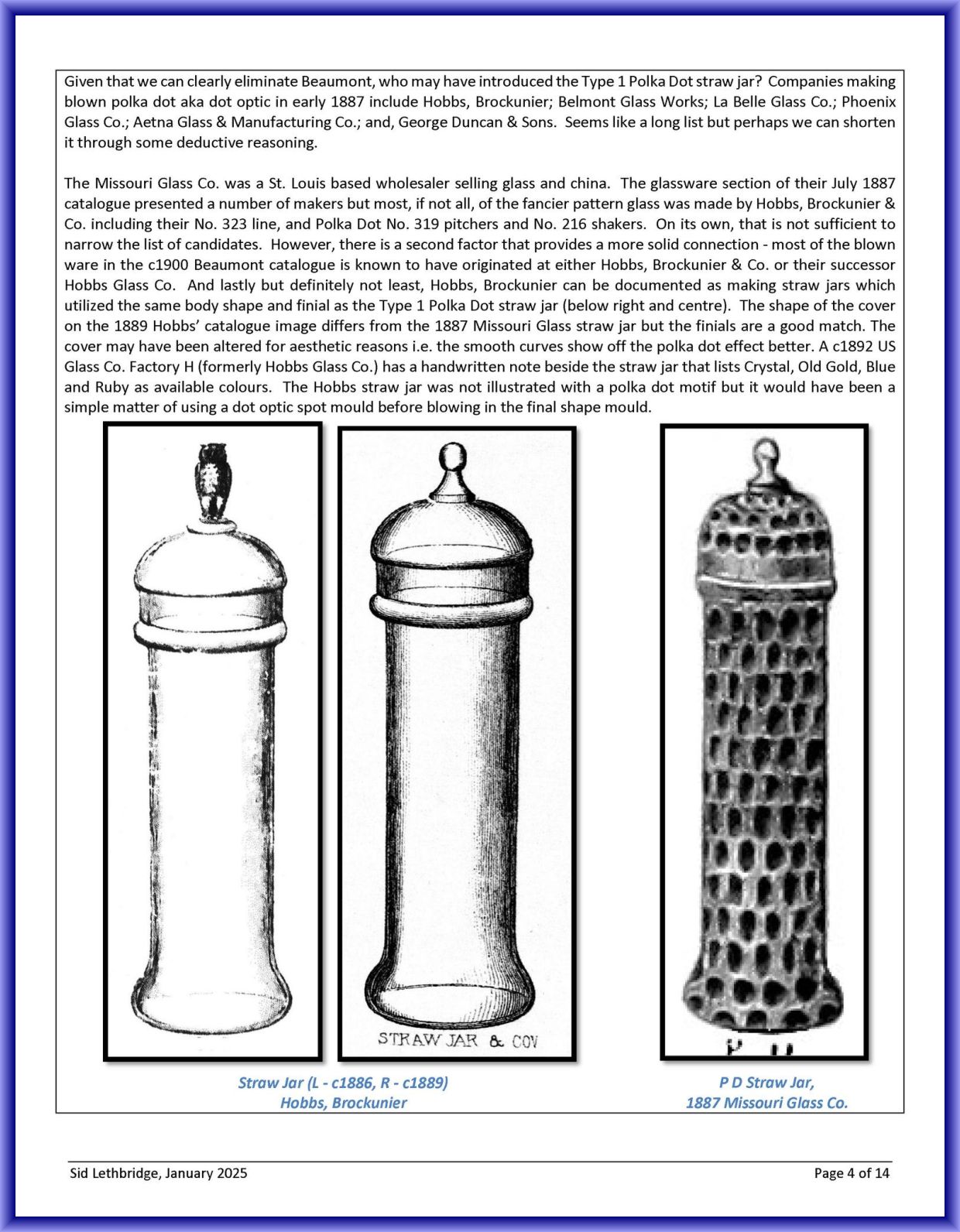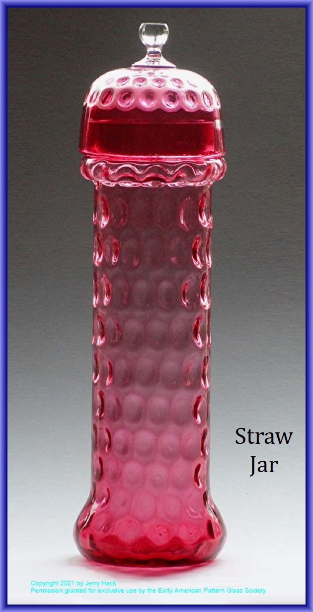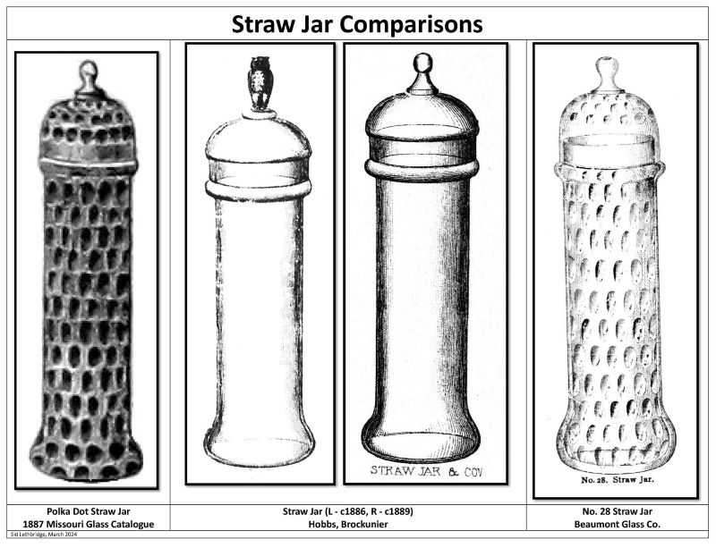 Contributor: Sid Lethbridge - I think the Polka Dot straw jar on the far left is Hobbs, Brockunier.