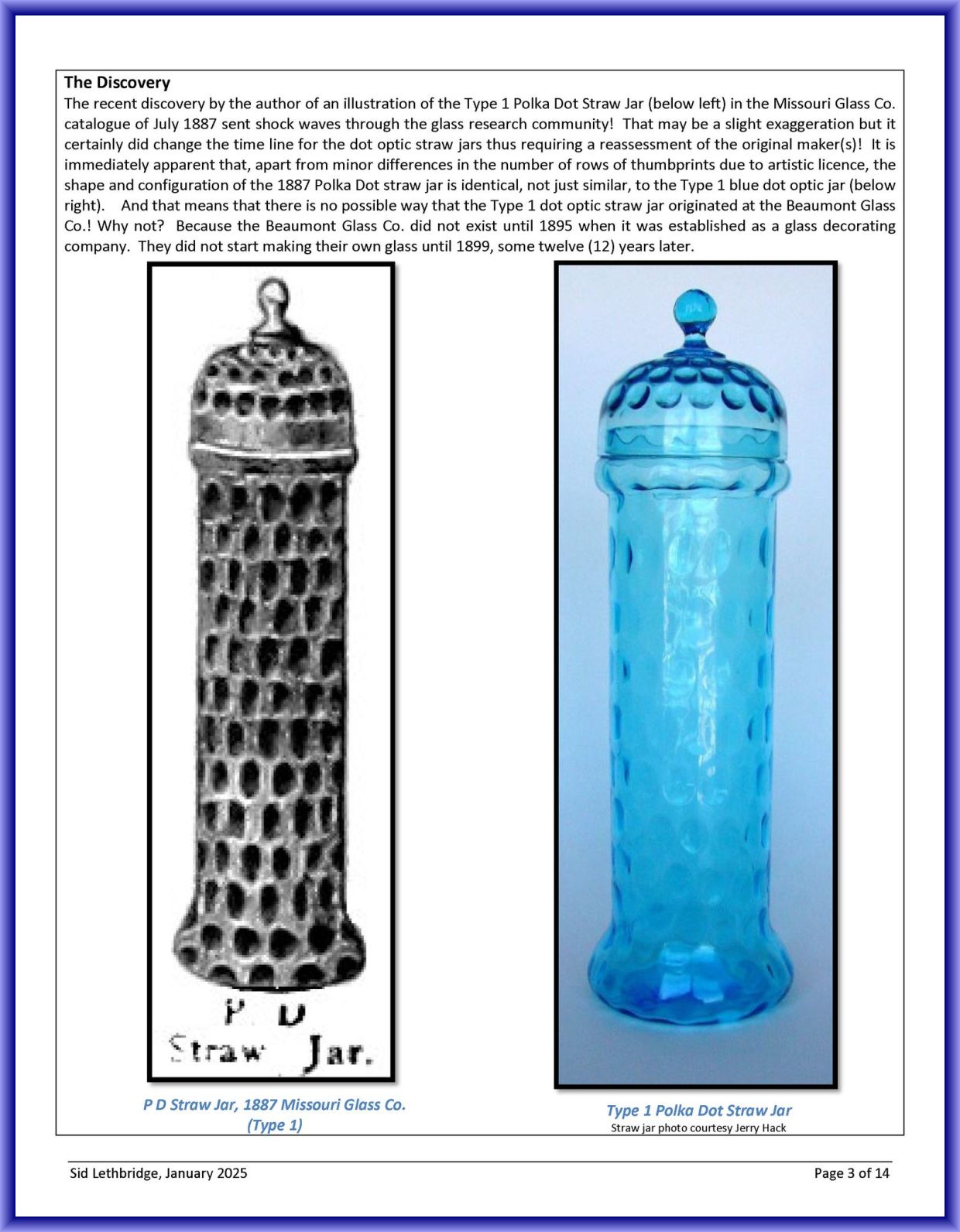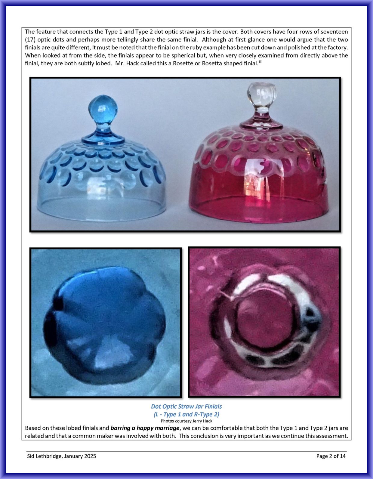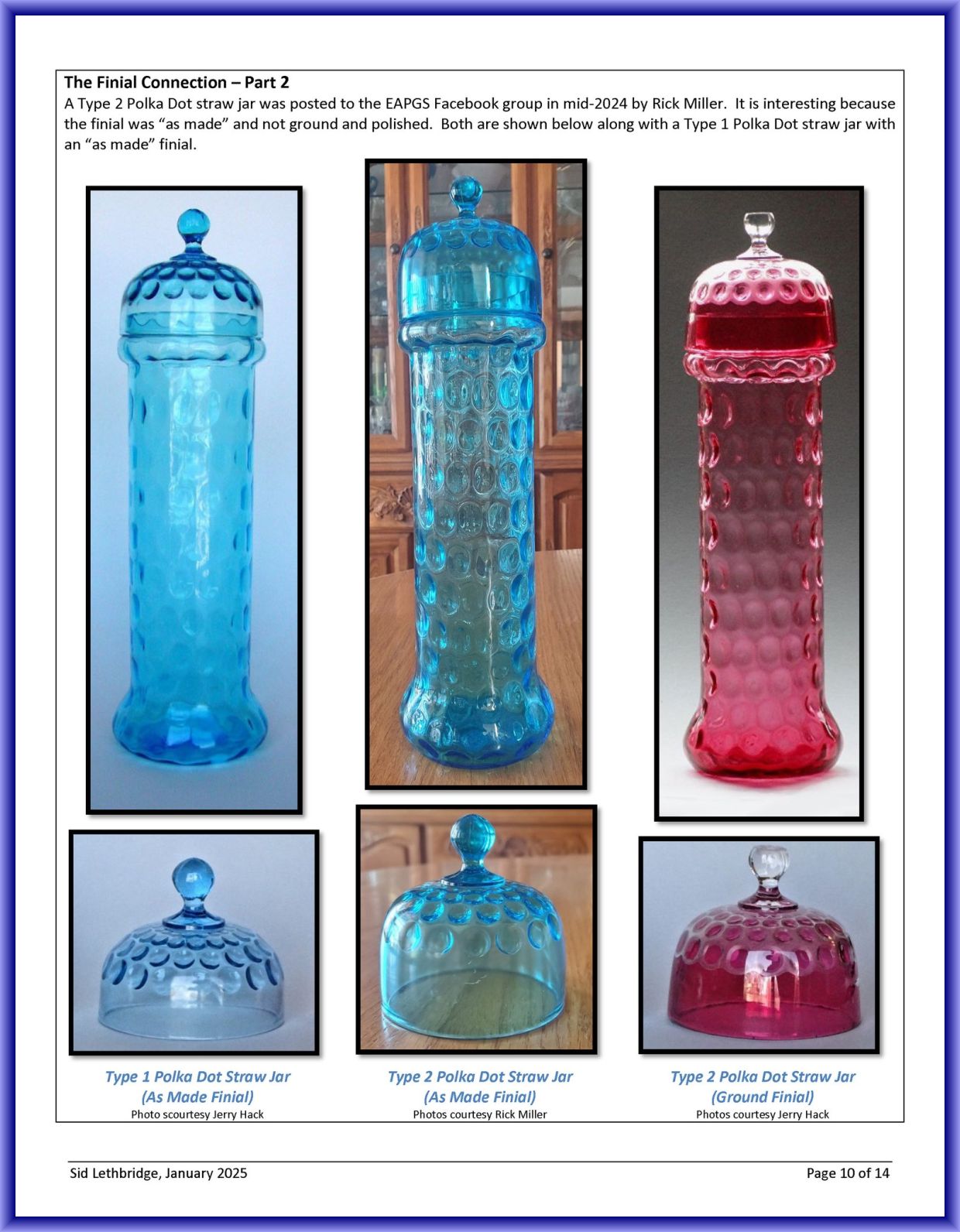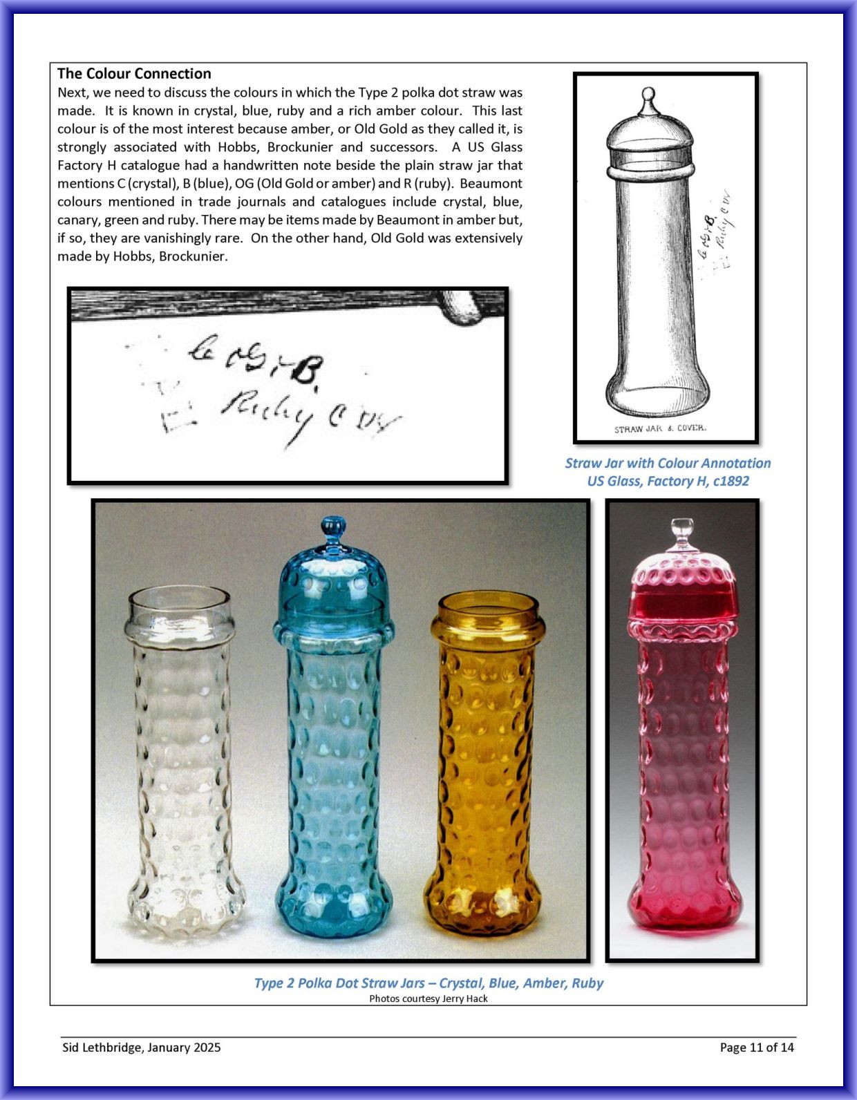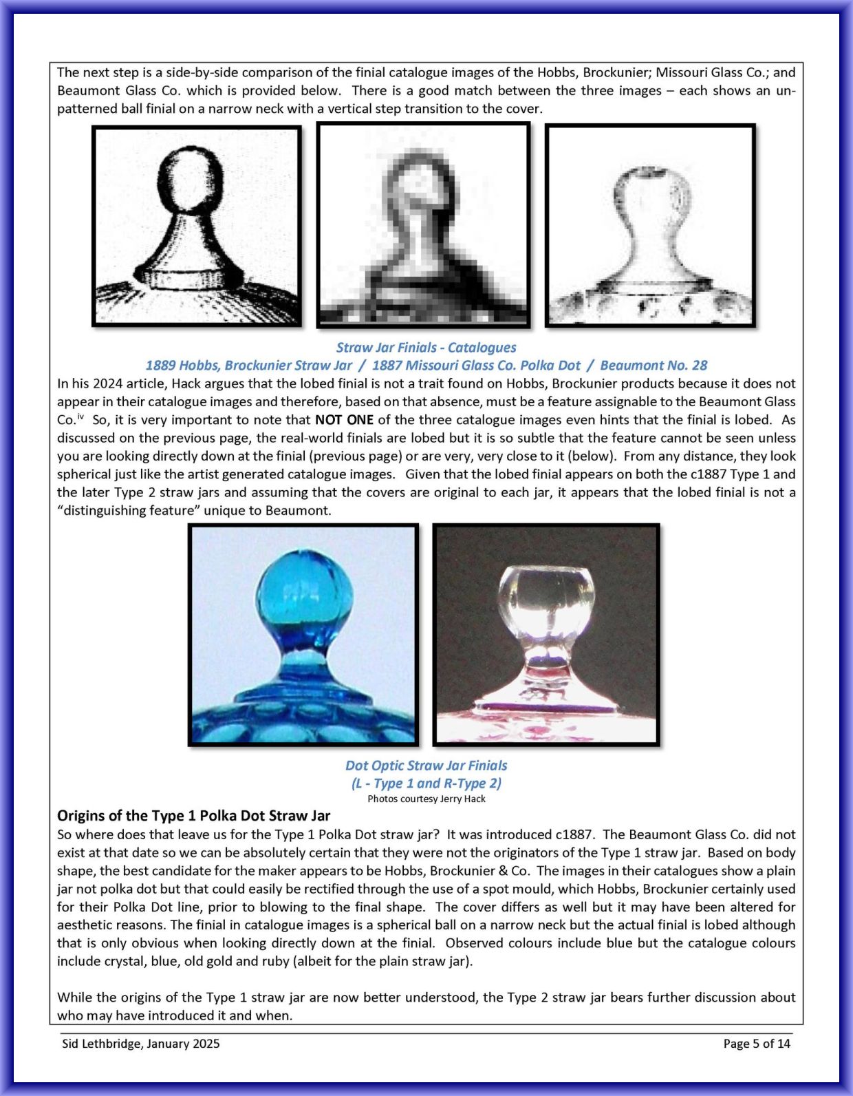 Contributor: Sid Lethbridge - I think the Polka Dot straw jar on the far left is Hobbs, Brockunier.