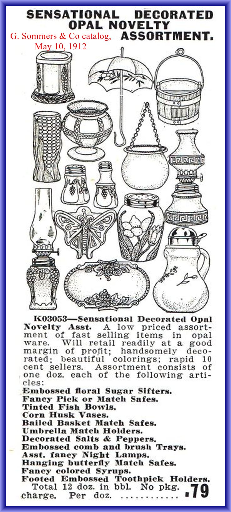 NOTE: Appears in wholesale assortments around 1911/12. Eagle Glass Co is considered a possible maker but no documentation is available.