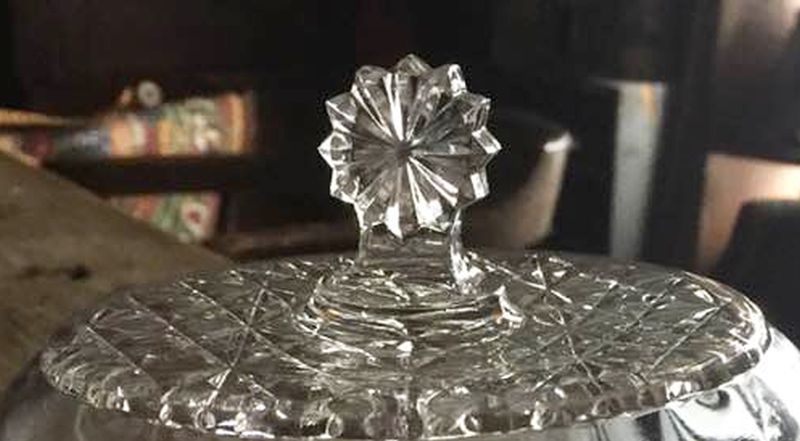 NOTE: The clear dome could be etched or engraved. Made in two styles- a high domed cover and a low flat cover. Example here has #3 etch aka Feeding Swan.