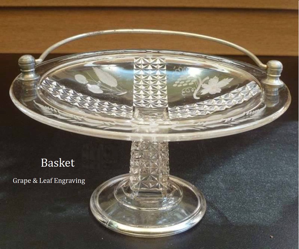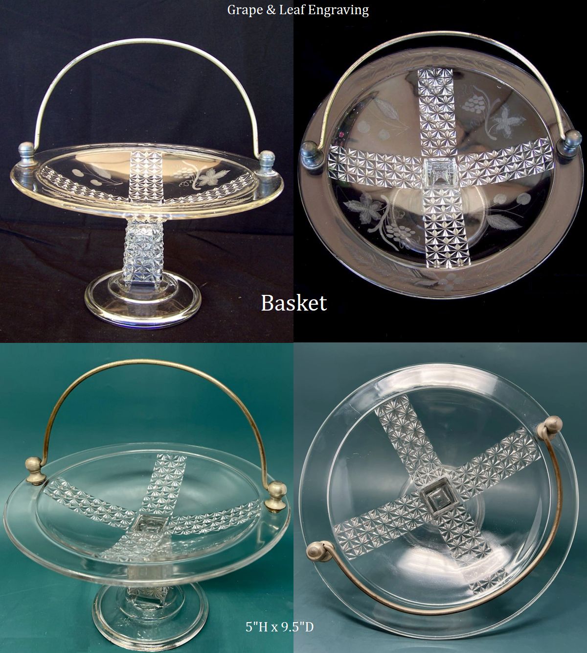 NOTE: Sid Lethbridge: The 1891 Ripley catalog page references patents from 1881 and 1882 so I suspect this basket was introduced in the early 1880s but was still in stock years later. The patents were issued to a gentleman by the name of Timberlake for handles not the glass design. Apparently Ripley was licenced to use his patents.