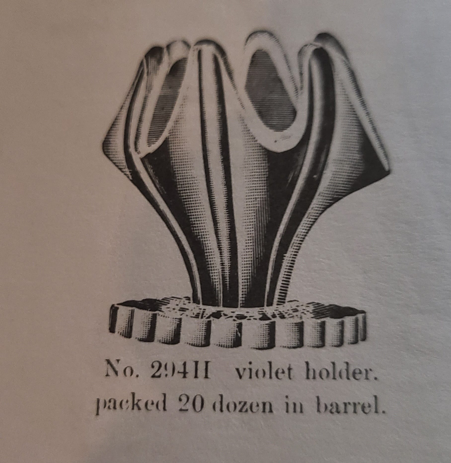Contributor: Kathy Conn Turner 3-10-26 - violet vase - Only shown in Imperial’s 2nd general catalog circa 1906-07...does not appear in any subsequent catalogs, so made for less than two years...same mould as bud v