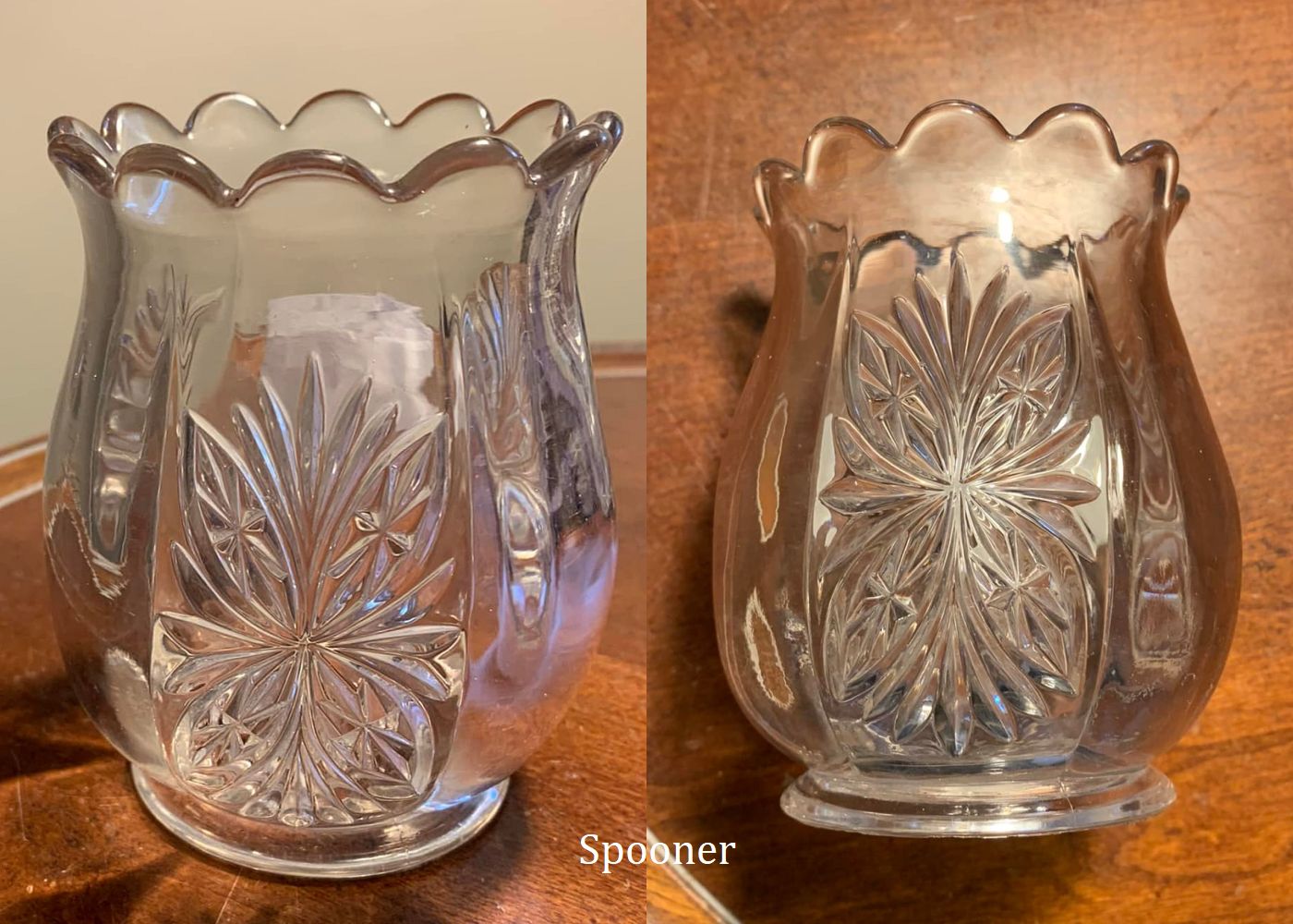 Contributor: Hawk Jackson - toothpick and spooner - Toothpick 2.5H 2.25D. Spoon holder 4.25H, 3D,