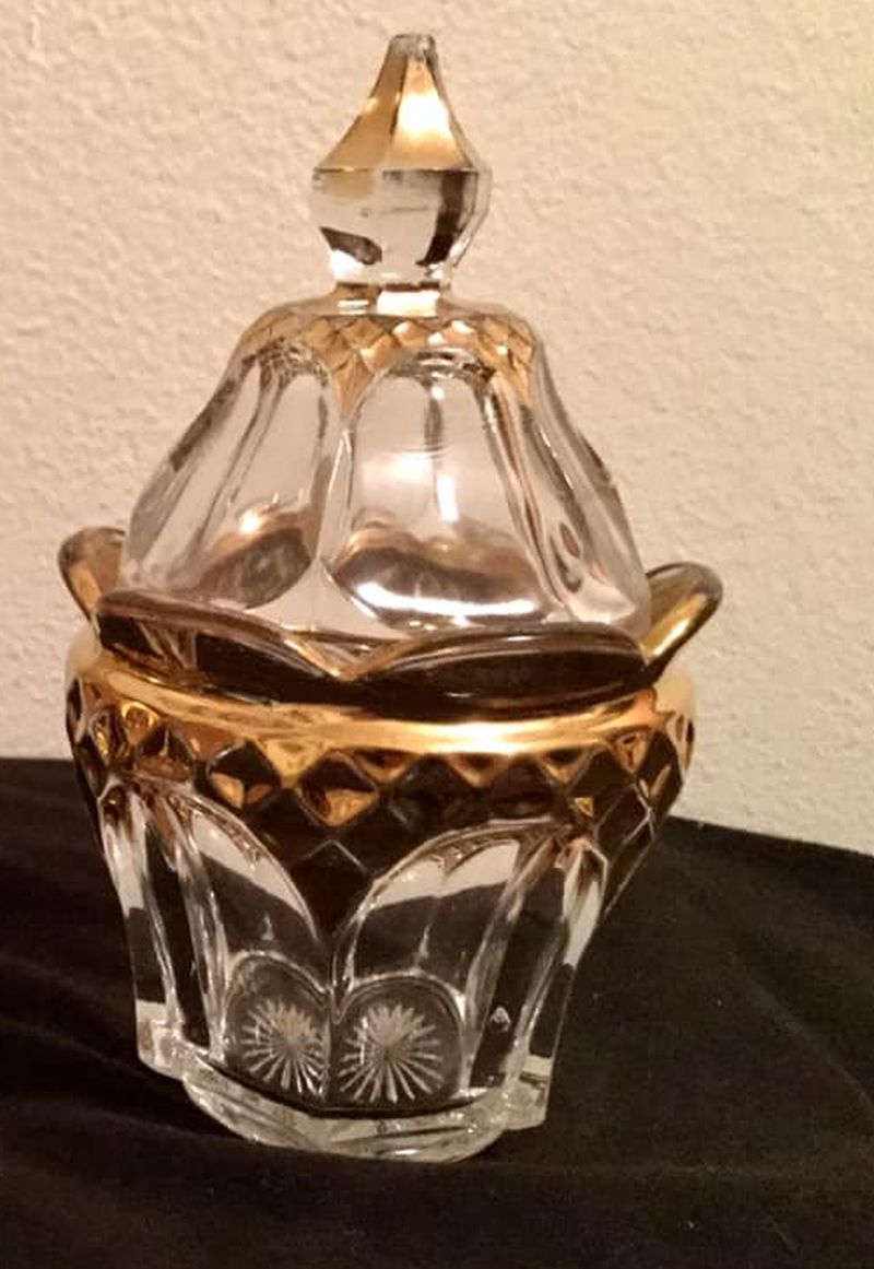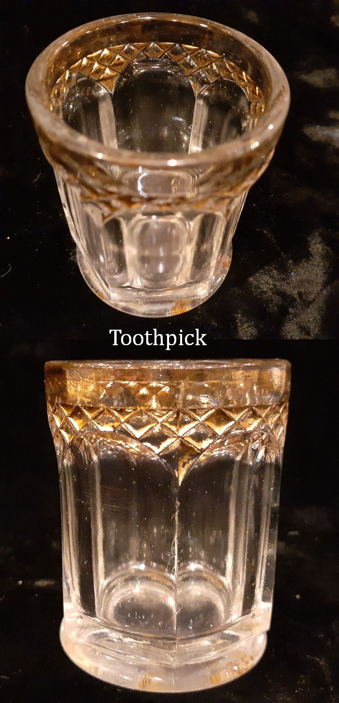 Contributor: Pam Wojcik cruet 8.5” w stopper, 6.5 “ w o .S&P: 3” tall , base 1.625” Toothpick 2.375”H Tray 7.125”D