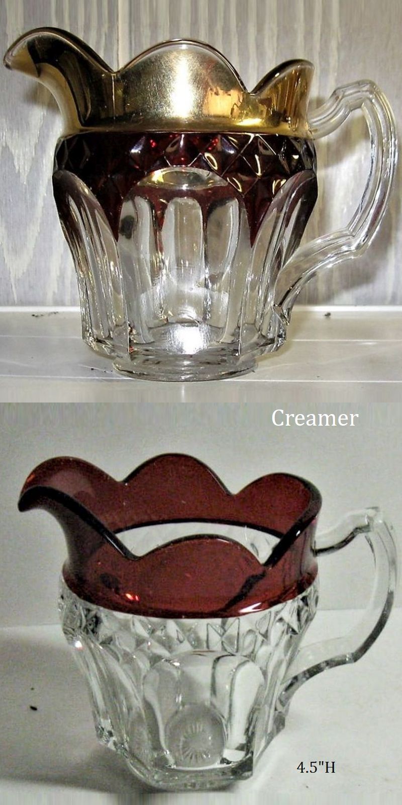 Contributor: Pam Wojcik cruet 8.5”H w stopper, 6.5 “ without stopper. shakers: 3”H Toothpick 2.375”H Tray 7.125”D