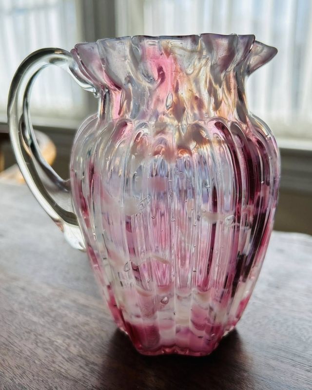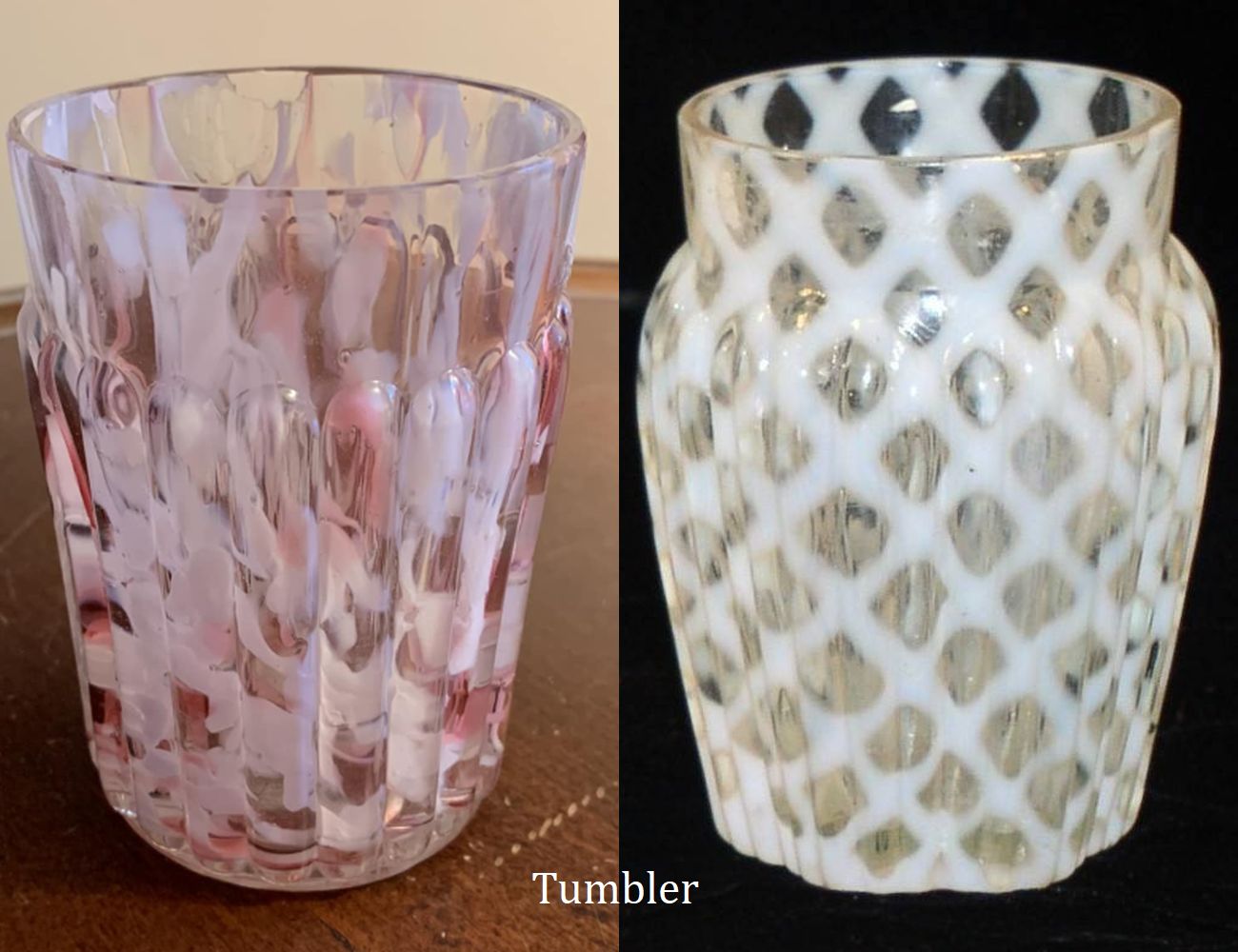 Contributor: Clark Adams pattern comparison shot in cranberry: Ribbed Opal Lattice on left; Ribbed Pillar on right