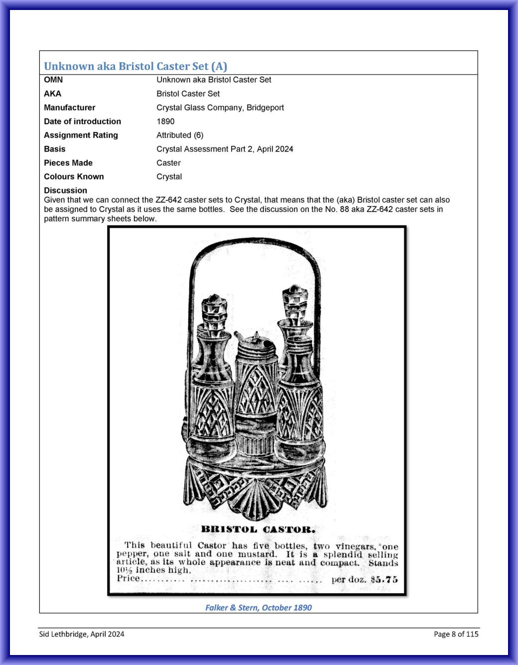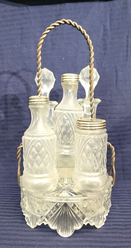 NOTE: Sid Lethbridge 2024: This set and CRYSTAL GLASS CO. OHIO No. 88 REVOLVING & FLAT CASTER (OMN) carry the same bottles. To see close up photos of the bottles see CRYSTAL GLASS CO. OHIO No. 88 REVOLVING & FLAT CASTER (OMN)