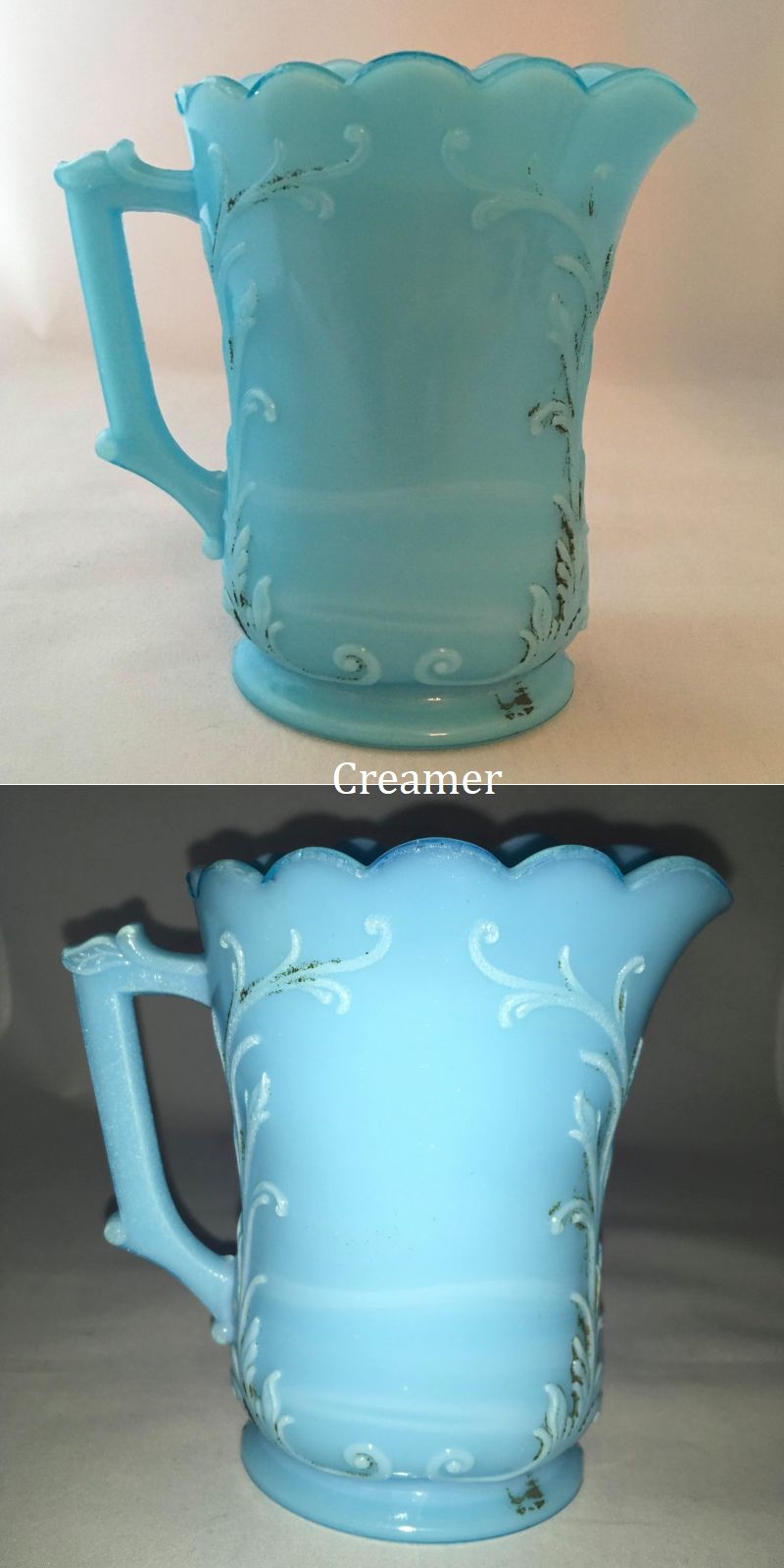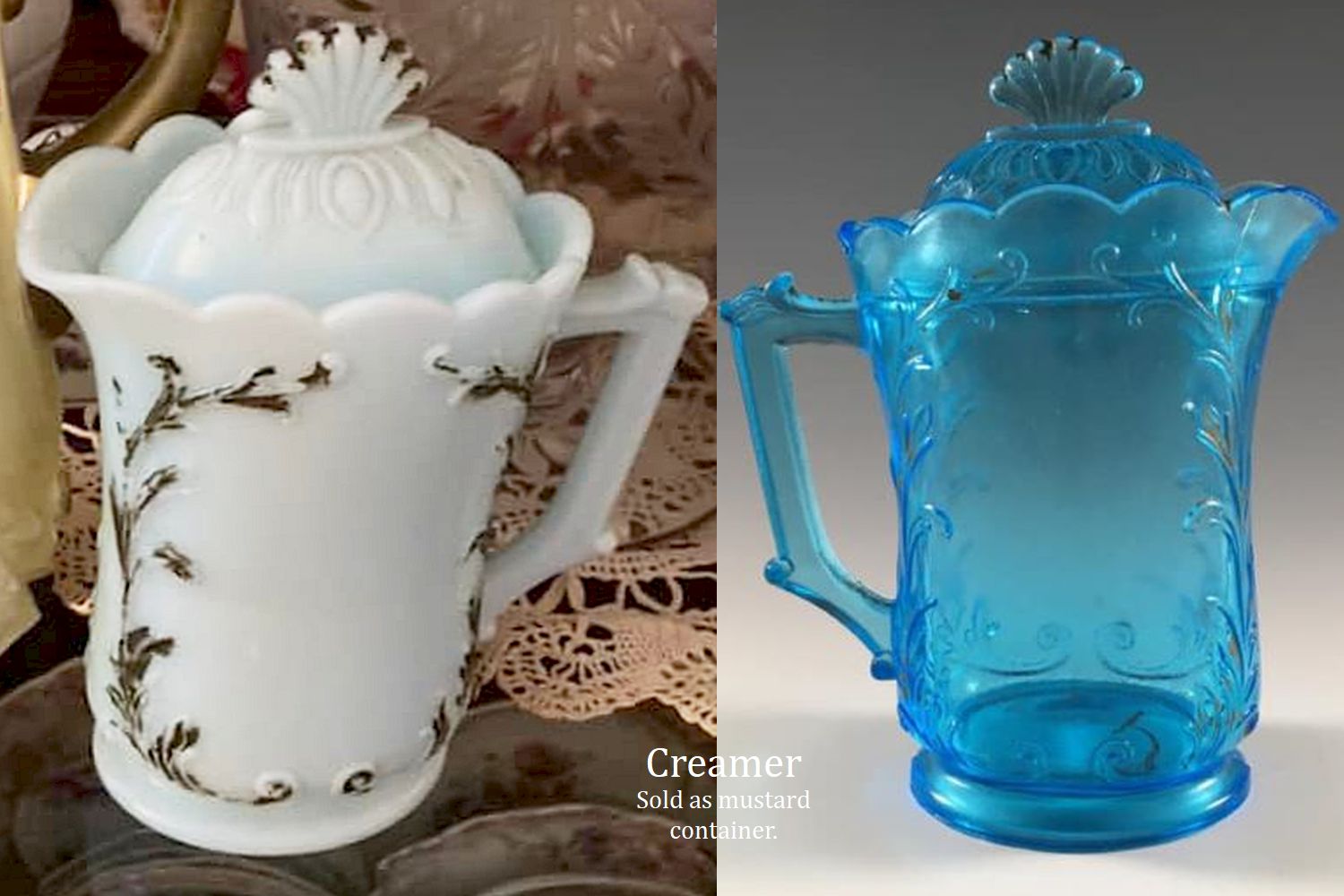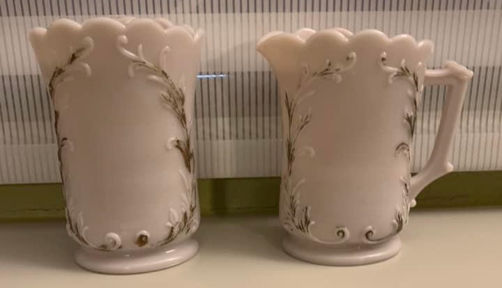 Contributor: Carolyn Casoria Lewis - missing the lids - slightly sun-purpled? - sugar/creamer set