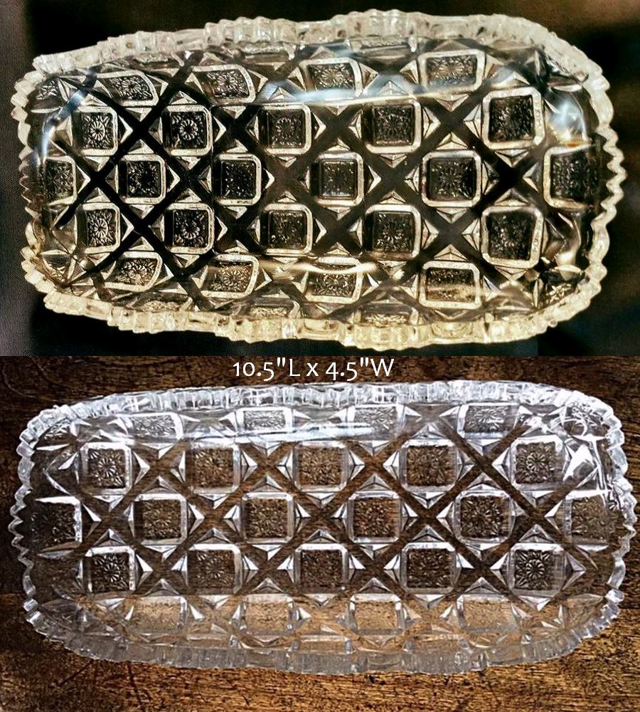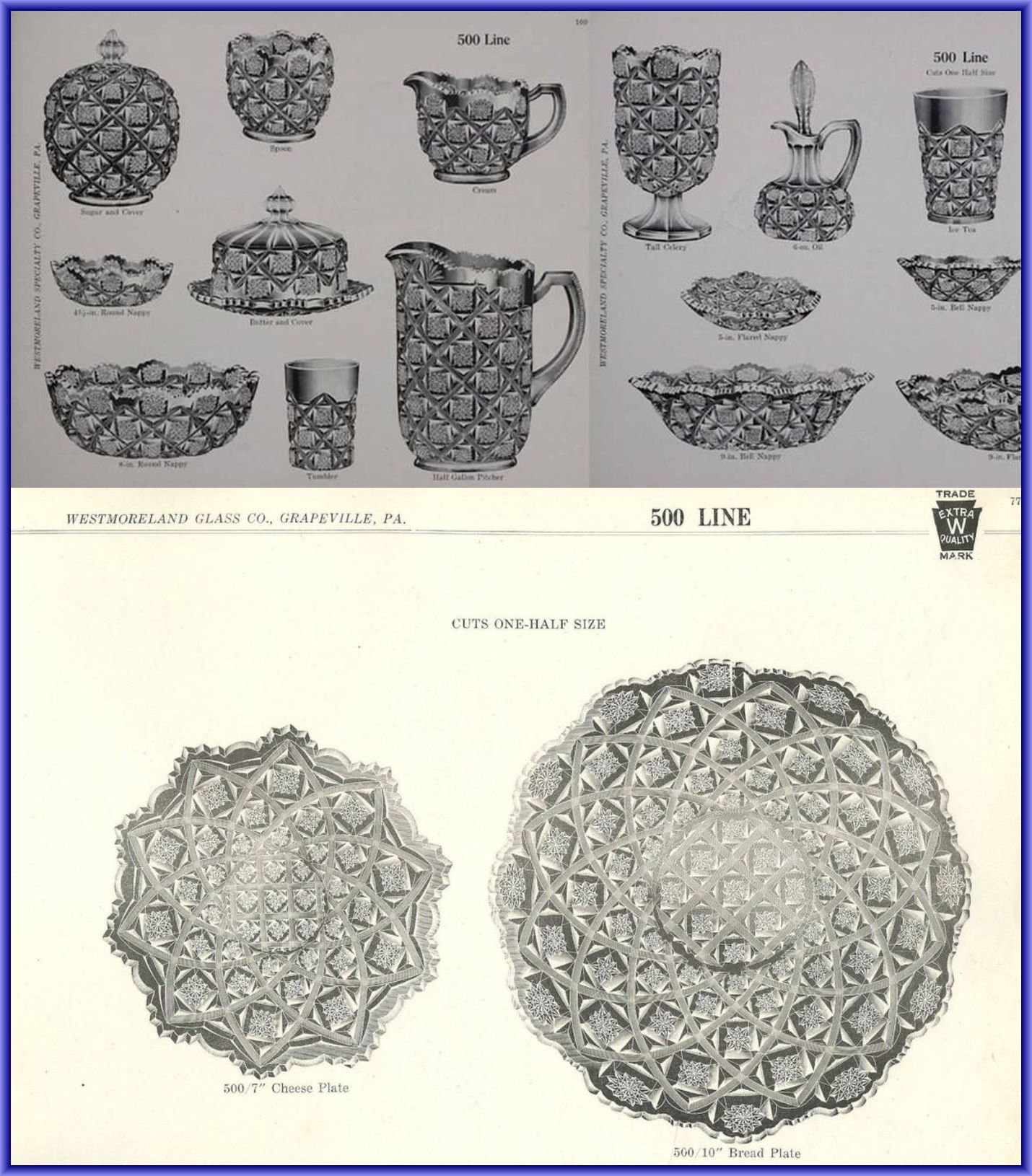 Contributor: Margaret Malloy, Pat Styer Snyder Millhouse - Westmoreland has the pattern all the way to the edge of the piece, Cambridge No. 2653 has a heavy tooth edge on it that is like a border.