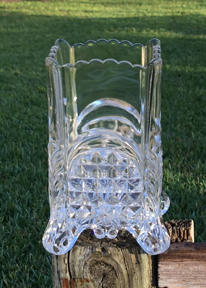 Contributor: Duane Schlosser 6.5" across the bowl, 12" tall, and about a 4.25" base.