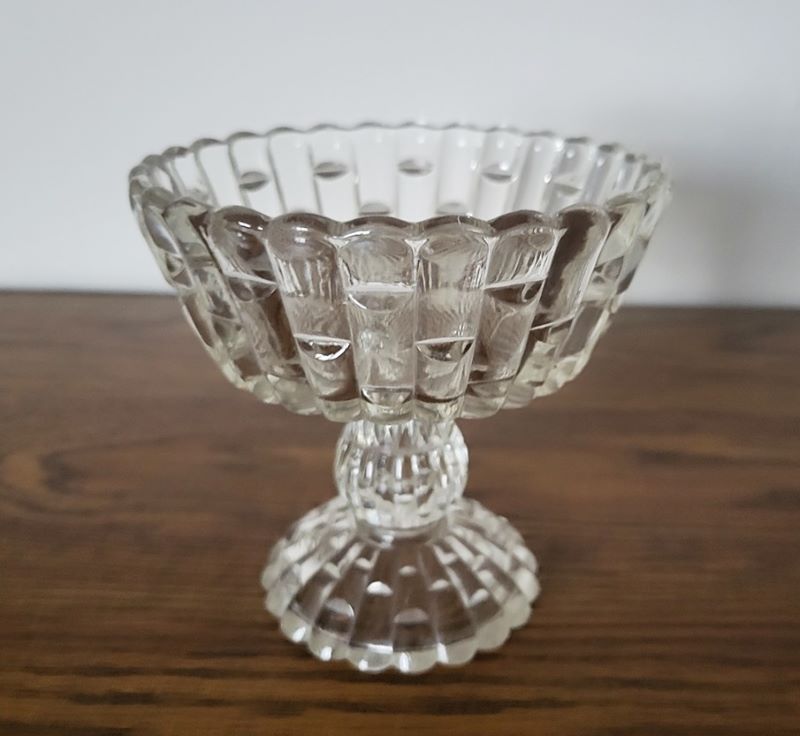 Contributor: Roger Radebaugh small comport 4 1/2" tall and the bowl is 4 1/2" wide