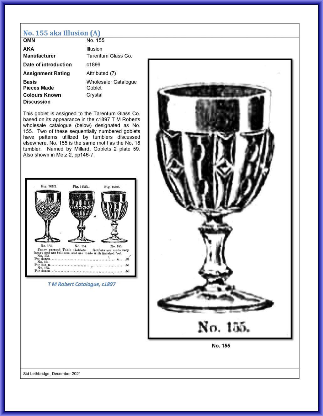 TARENTUM GLASS CO. No. 155 (OMN) by Tarentum Glass Company/Tarentum-PA (Company Operated: 1894-1918), c1896 Introduced