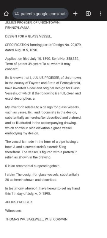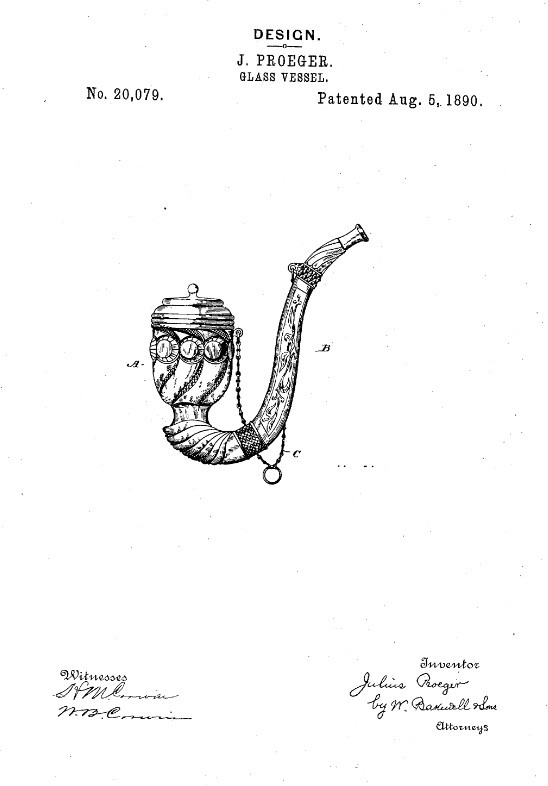 Note:Sid Lethbridge 2024 - At the time of the patent issuance, Julius Proeger was living in Uniontown, PA which is where the Thompson Glass Co. was located. He was one of the initial shareholders of the company when it was founded in 1888.