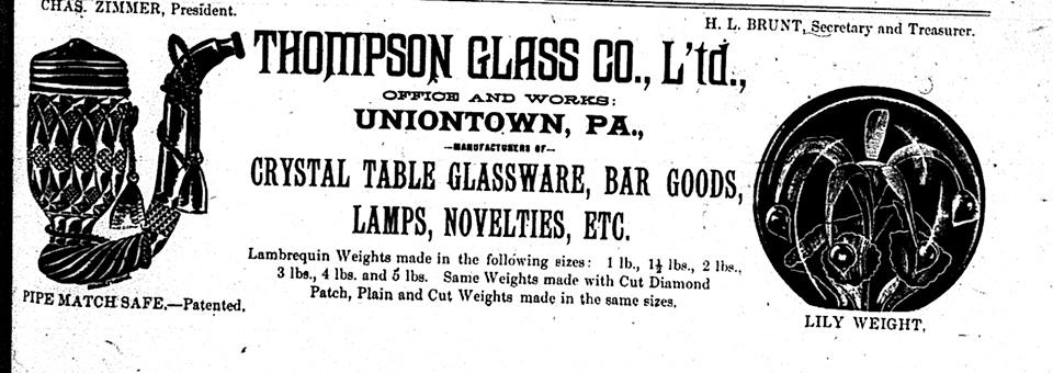 PIPE MATCH SAFE (AKA) thomp by Thompson Glass Company/Uniontown-PA (Company Operated: 1889-1896), 1890 Introduced