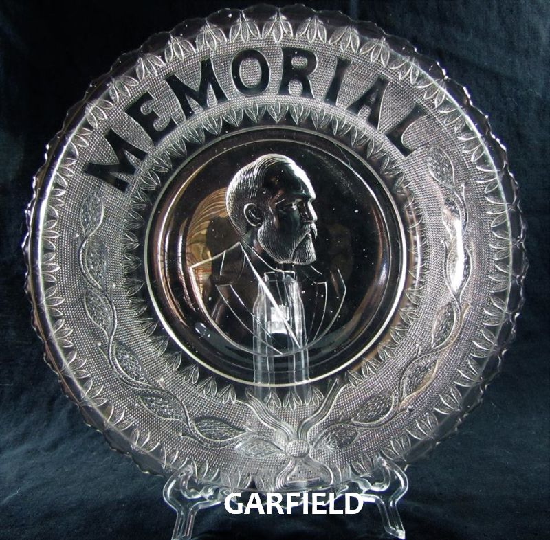 GARFIELD MEMORIAL PLATE (OMN) by Campbell, Jones & Company/Pittsburgh-PA (Company Operated: 1865-1886), 1881 Introduced