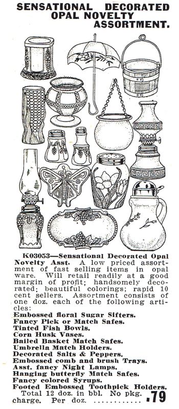 NOTE: Appears in wholesale assortments around 1911/12. Eagle Glass Co is considered a possible maker but no documentation is available.