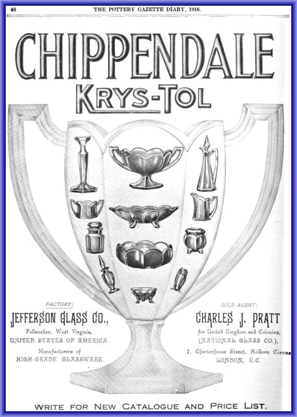 Contributor: Bob Finnimore T48 per Jefferson catalog in KrysTol! KrysTol! KrysTol! 5 ? inches in height; 4 ? inches diameter @ top; 3 ¼ inches width at base. Marked with KRYS-TOL inside bottom of bowl.