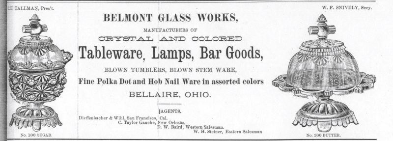Contributor: Courtesy of Tom and Neila Bredehoft-- an advertisement from the March 11,1886 issue of the Pottery & glassware reporter for the No. 100 aka Daisy and Button pattern from the Belmont Glass Works of Bel