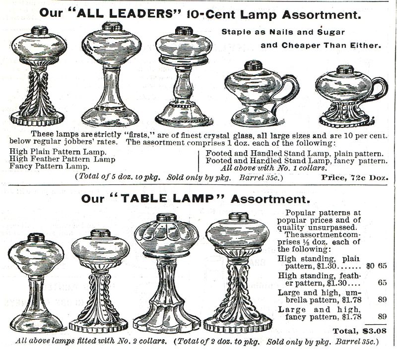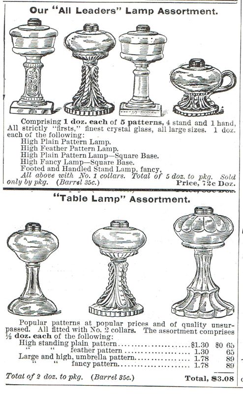 Contributor: Sid Lethbridge - Butler Bros. assortments from 1898. Erin Fan lamps appear in both the "All Leader" and "Table Lamp" asst.