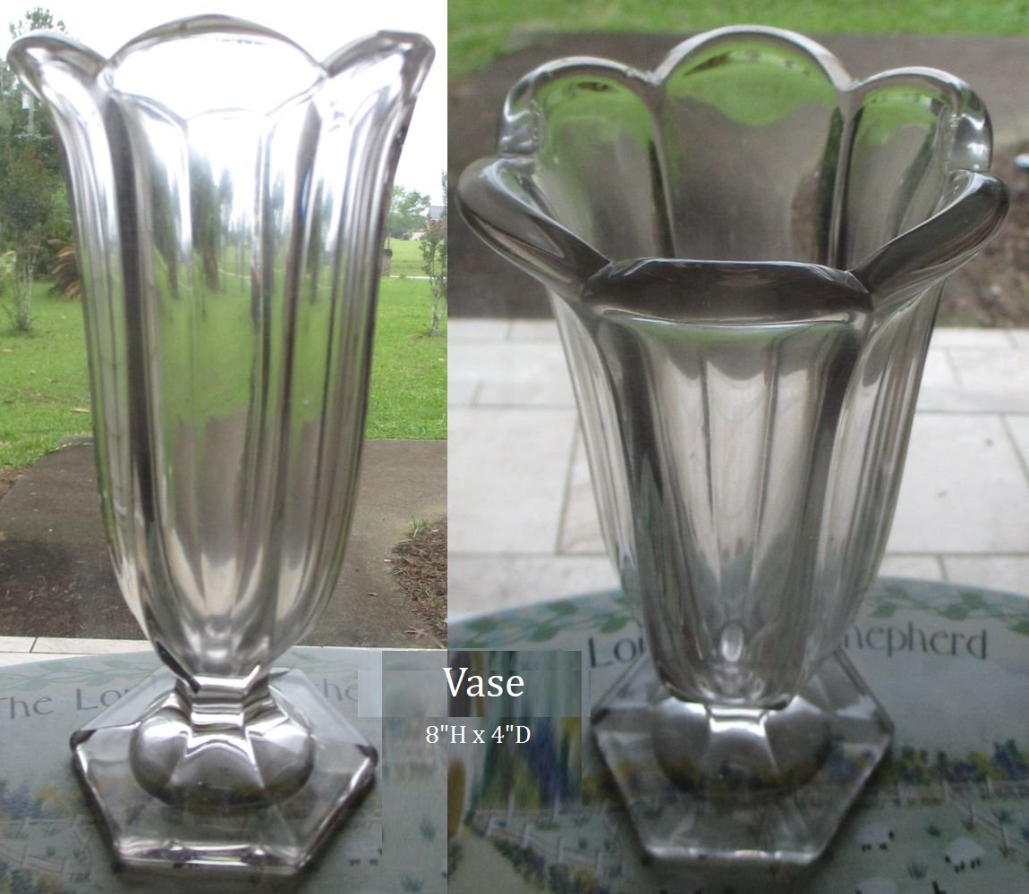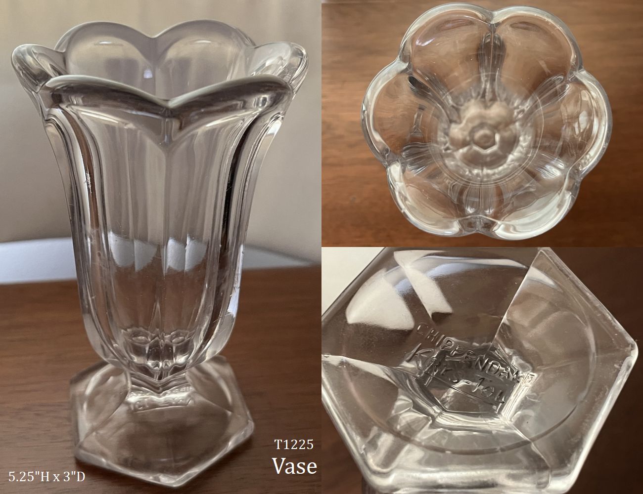 Contributor: Bob Finnimore T48 per Jefferson catalog in KrysTol! KrysTol! KrysTol! 5 ? inches in height; 4 ? inches diameter @ top; 3 ¼ inches width at base. Marked with KRYS-TOL inside bottom of bowl.